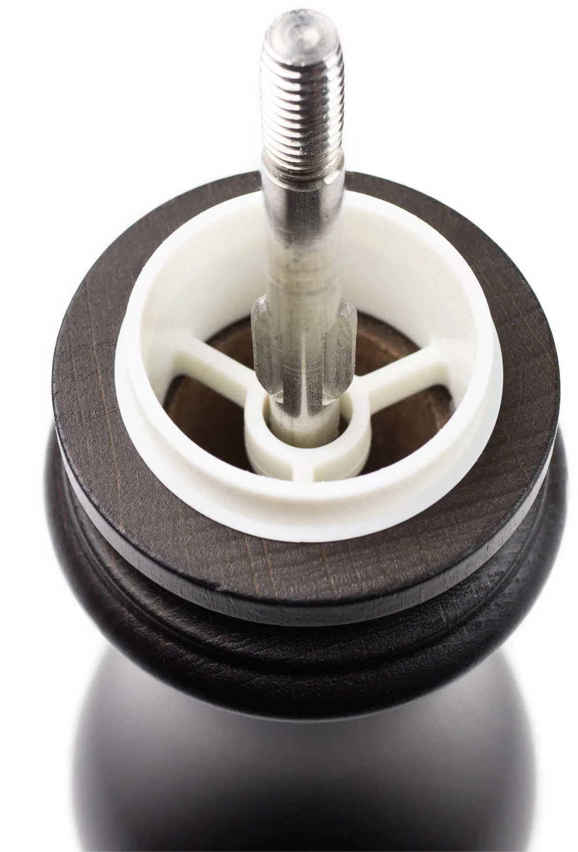 Ustawienie grubości mielenia w młynkach PEUGEOT może odbywać się bądź poprzez tradycyjną płynną regulację dzięki dokręceniu pokrętła w górnej części korpusu, bądź w przypadku młynków z mechanizmem uSelect, przez wybór jednego z 6 stopni grubości mielenia (1 dla najdrobniejszego, 6 dla najgrubszego).