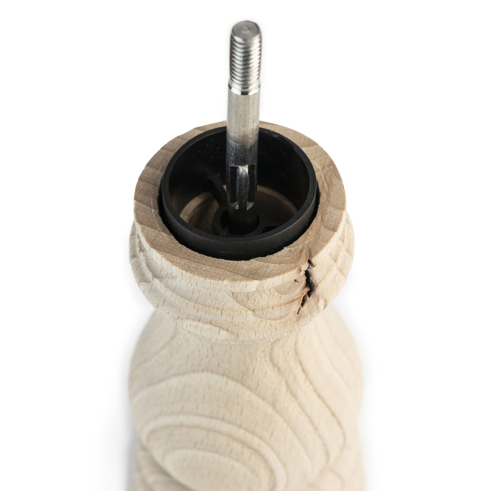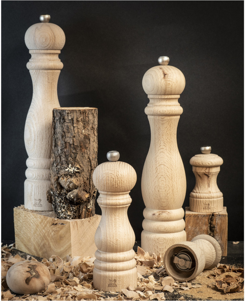Projektanci firmy PEUEGOT postanowili wykorzystać drewno, które ze względu na pewne niedoskonałości, odrzucane zostało podczas produkcji innych linii młynków. Aby uzyskać niepowtarzalny, naturalny wygląd, który jest charakterystyczny dla młynków PARIS NATURE, drewno nadające się do ponownego użycia, poddaje się teksturowaniu poprzez natryskiwanie drobinkami łupin orzecha włoskiego. Korpus młynka w całości wykonany jest z drewna bukowego pozyskanego z certyfikowanych lasów PEFC™. Wytoczone drewno zabezpieczane jest ekologicznym lakierem pochodzenia roślinnego składającym się z oleju lnianego i wosku Carnauba. W ten oto sposób zachowano naturalny charakter rysunku drewna i zapewniono jego maksymalną trwałość.