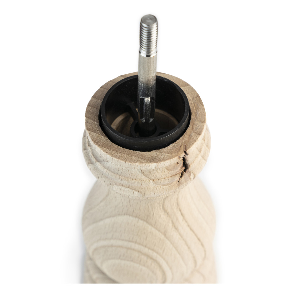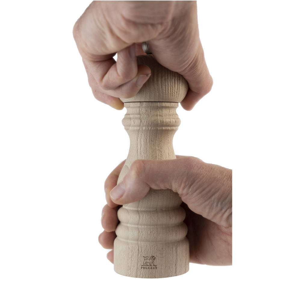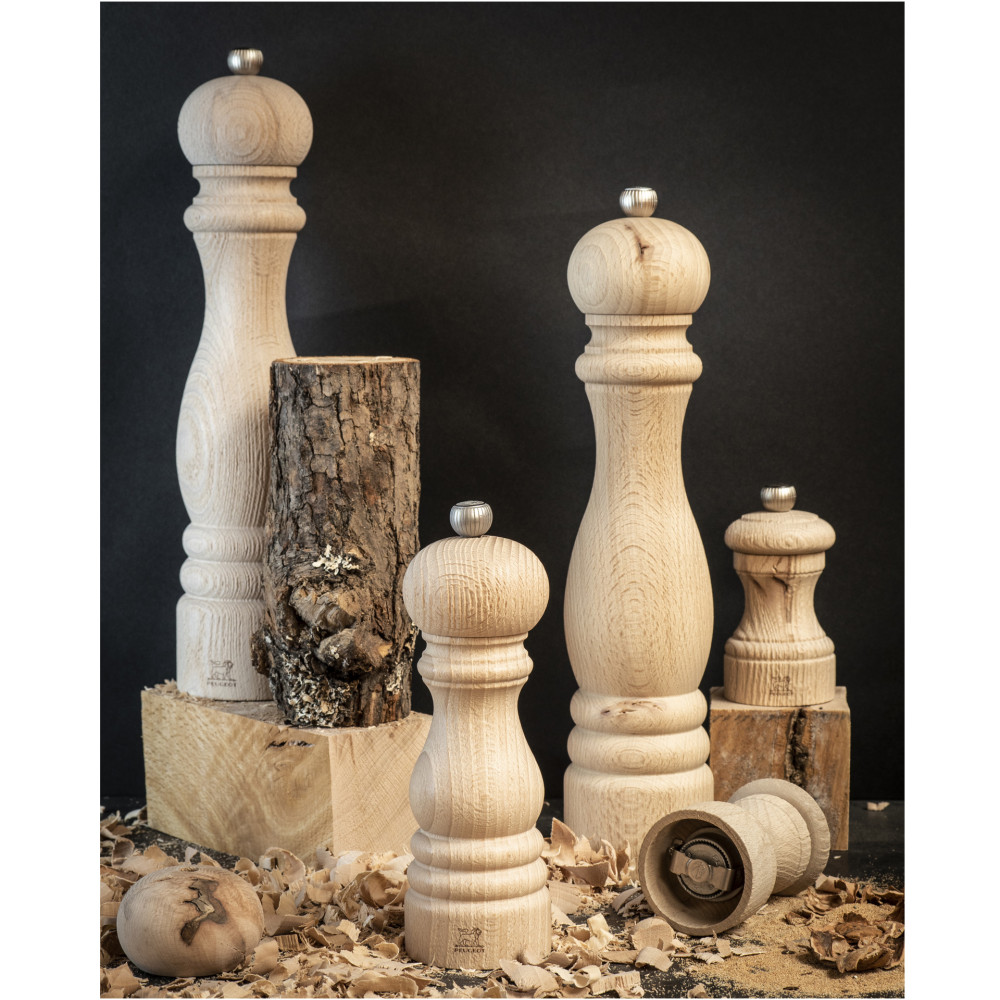Projektanci firmy PEUEGOT postanowili wykorzystać drewno, które ze względu na pewne niedoskonałości, odrzucane zostało podczas produkcji innych linii młynków. Aby uzyskać niepowtarzalny, naturalny wygląd, który jest charakterystyczny dla młynków PARIS NATURE, drewno nadające się do ponownego użycia, poddaje się teksturowaniu poprzez natryskiwanie drobinkami łupin orzecha włoskiego. Korpus młynka w całości wykonany jest z drewna bukowego pozyskanego z certyfikowanych lasów PEFC™. Wytoczone drewno zabezpieczane jest ekologicznym lakierem pochodzenia roślinnego składającym się z oleju lnianego i wosku Carnauba. W ten oto sposób zachowano naturalny charakter rysunku drewna i zapewniono jego maksymalną trwałość.