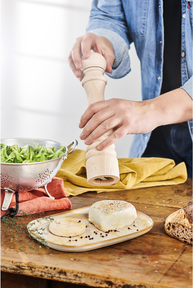 Projektanci firmy PEUEGOT postanowili wykorzystać drewno, które ze względu na pewne niedoskonałości, odrzucane zostało podczas produkcji innych linii młynków. Aby uzyskać niepowtarzalny, naturalny wygląd, który jest charakterystyczny dla młynków PARIS NATURE, drewno nadające się do ponownego użycia, poddaje się teksturowaniu poprzez natryskiwanie drobinkami łupin orzecha włoskiego. Korpus młynka w całości wykonany jest z drewna bukowego pozyskanego z certyfikowanych lasów PEFC™. Wytoczone drewno zabezpieczane jest ekologicznym lakierem pochodzenia roślinnego składającym się z oleju lnianego i wosku Carnauba. W ten oto sposób zachowano naturalny charakter rysunku drewna i zapewniono jego maksymalną trwałość.