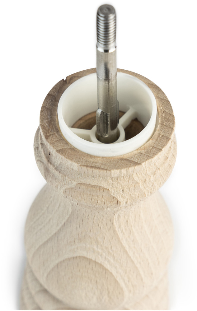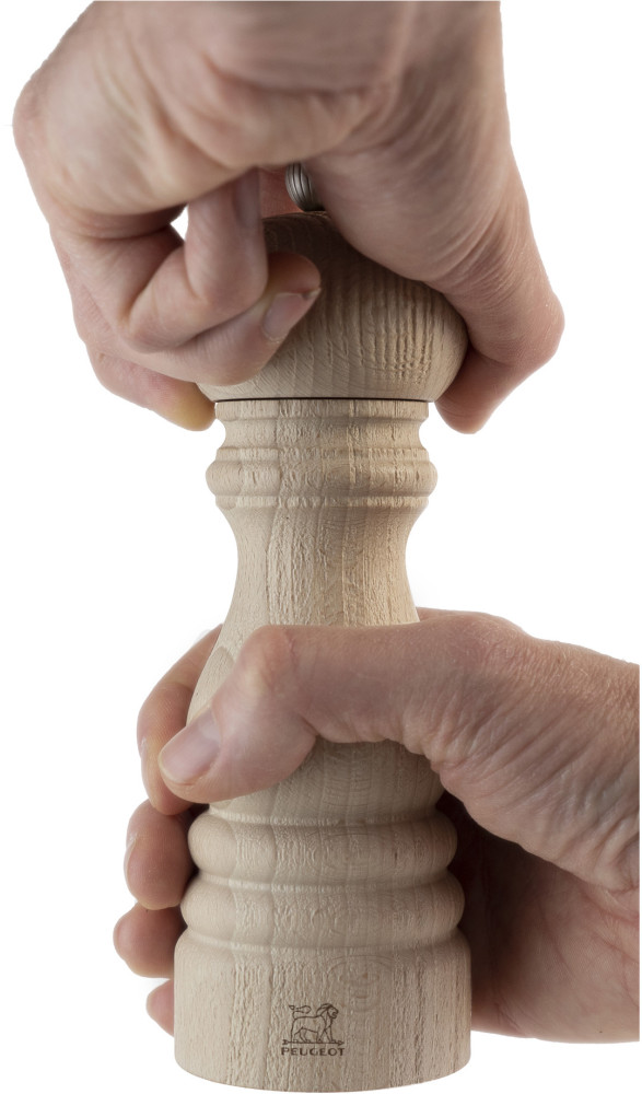 Projektanci firmy PEUEGOT postanowili wykorzystać drewno, które ze względu na pewne niedoskonałości, odrzucane zostało podczas produkcji innych linii młynków. Aby uzyskać niepowtarzalny, naturalny wygląd, który jest charakterystyczny dla młynków PARIS NATURE, drewno nadające się do ponownego użycia, poddaje się teksturowaniu poprzez natryskiwanie drobinkami łupin orzecha włoskiego. Korpus młynka w całości wykonany jest z drewna bukowego pozyskanego z certyfikowanych lasów PEFC™. Wytoczone drewno zabezpieczane jest ekologicznym lakierem pochodzenia roślinnego składającym się z oleju lnianego i wosku Carnauba. W ten oto sposób zachowano naturalny charakter rysunku drewna i zapewniono jego maksymalną trwałość.