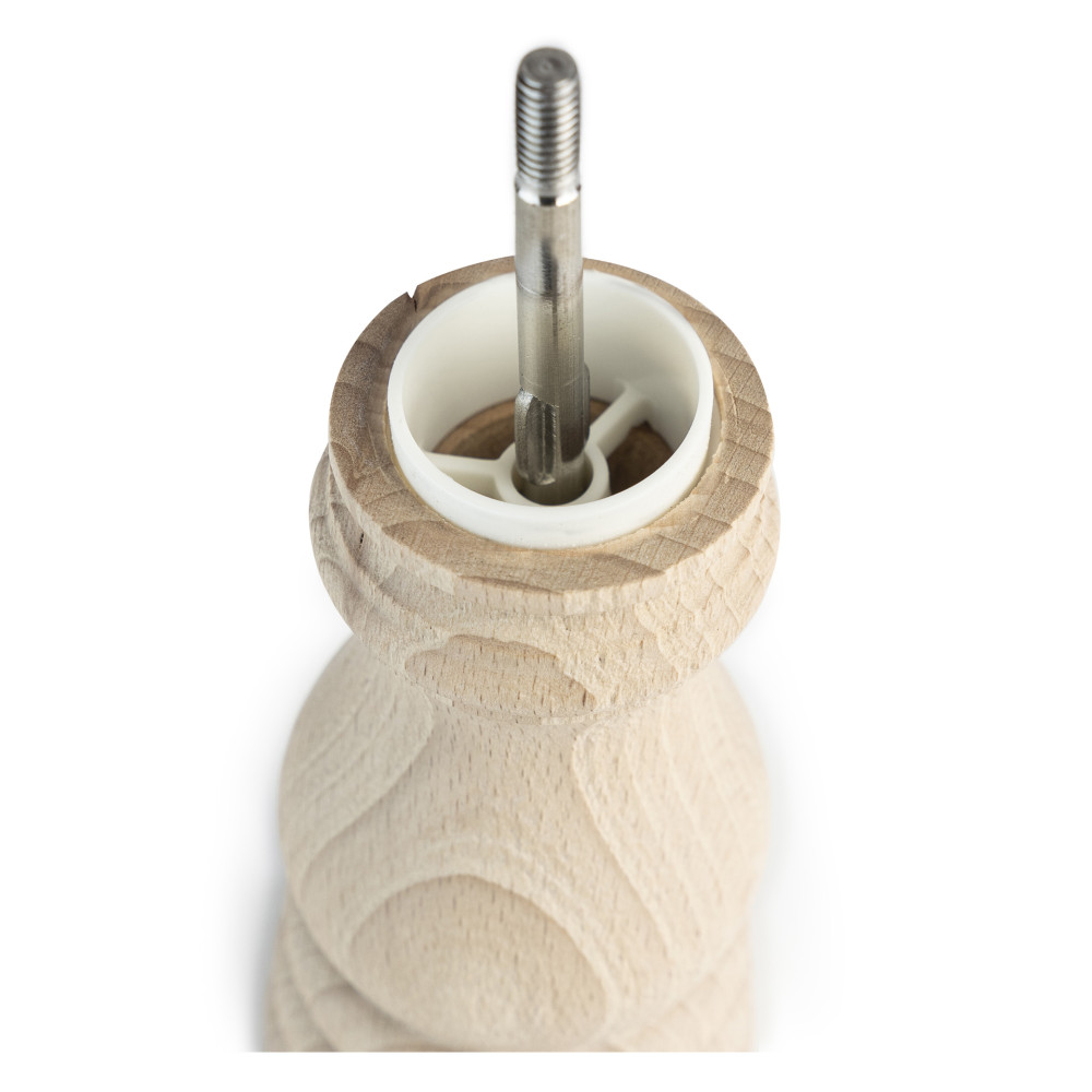 Projektanci firmy PEUEGOT postanowili wykorzystać drewno, które ze względu na pewne niedoskonałości, odrzucane zostało podczas produkcji innych linii młynków. Aby uzyskać niepowtarzalny, naturalny wygląd, który jest charakterystyczny dla młynków PARIS NATURE, drewno nadające się do ponownego użycia, poddaje się teksturowaniu poprzez natryskiwanie drobinkami łupin orzecha włoskiego. Korpus młynka w całości wykonany jest z drewna bukowego pozyskanego z certyfikowanych lasów PEFC™. Wytoczone drewno zabezpieczane jest ekologicznym lakierem pochodzenia roślinnego składającym się z oleju lnianego i wosku Carnauba. W ten oto sposób zachowano naturalny charakter rysunku drewna i zapewniono jego maksymalną trwałość.
