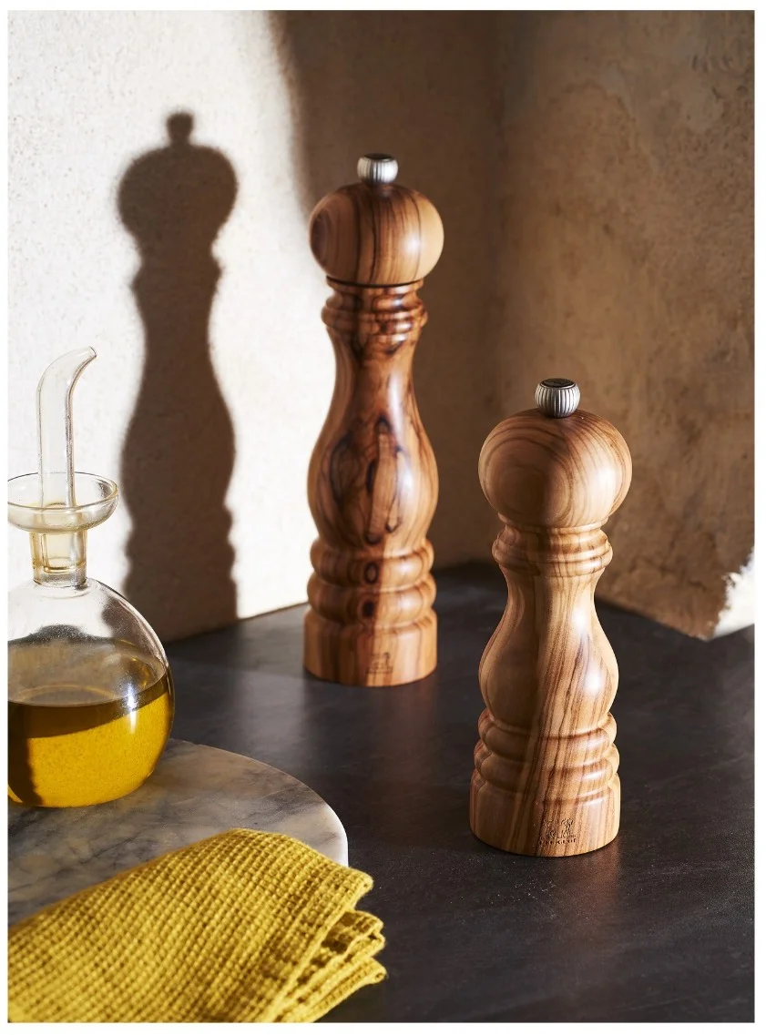 Młynek Peugeot Paris Olivier z drewna oliwnego stanowi udoskonalenie stworzonego w 1987 roku kultowego modelu Paris. Różnorodne barwy szlachetnego drewna oliwnego oraz wyraziste usłojenie, dają oszałamiający efekt. Jego ergonomiczny kształt sprawia, że jest niezwykle wygodny w użyciu. Równie piękny, jak funkcjonalny stanie się jednym z nieocenionych sprzymierzeńców Twojej kuchni.