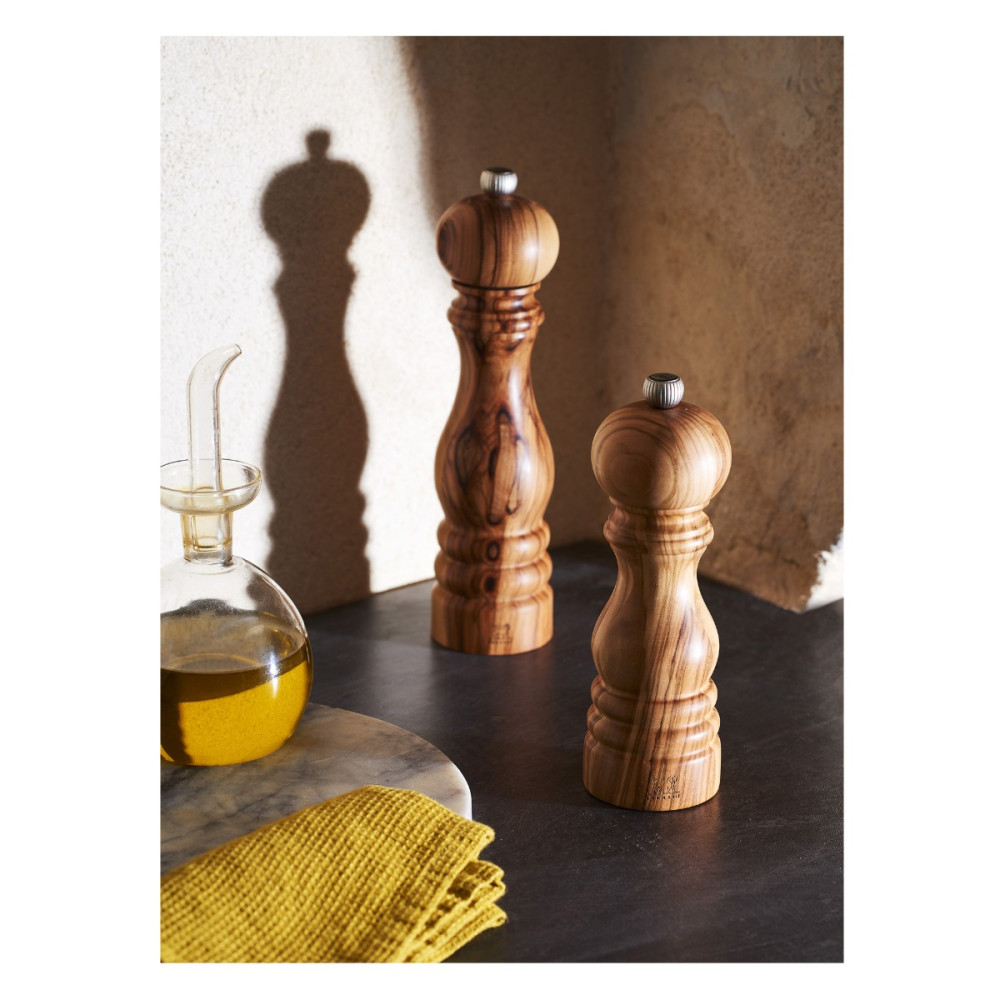 Młynek Peugeot Paris Olivier z drewna oliwnego stanowi udoskonalenie stworzonego w 1987 roku kultowego modelu Paris. Różnorodne barwy szlachetnego drewna oliwnego oraz wyraziste usłojenie, dają oszałamiający efekt. Jego ergonomiczny kształt sprawia, że jest niezwykle wygodny w użyciu. Równie piękny, jak funkcjonalny stanie się jednym z nieocenionych sprzymierzeńców Twojej kuchni.