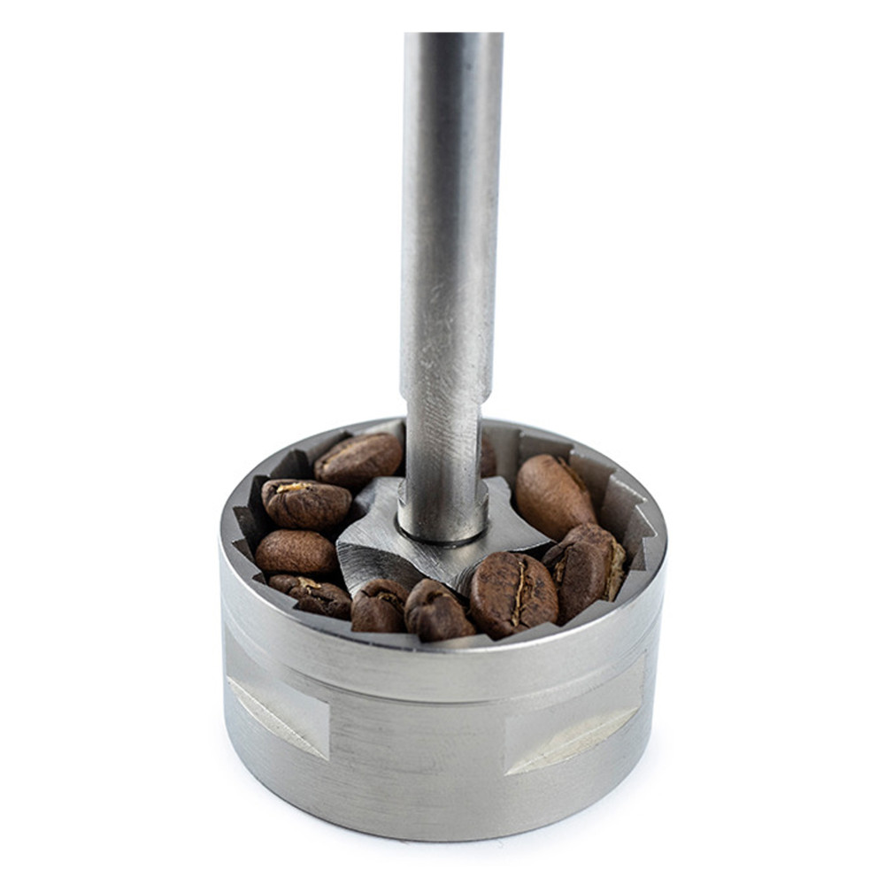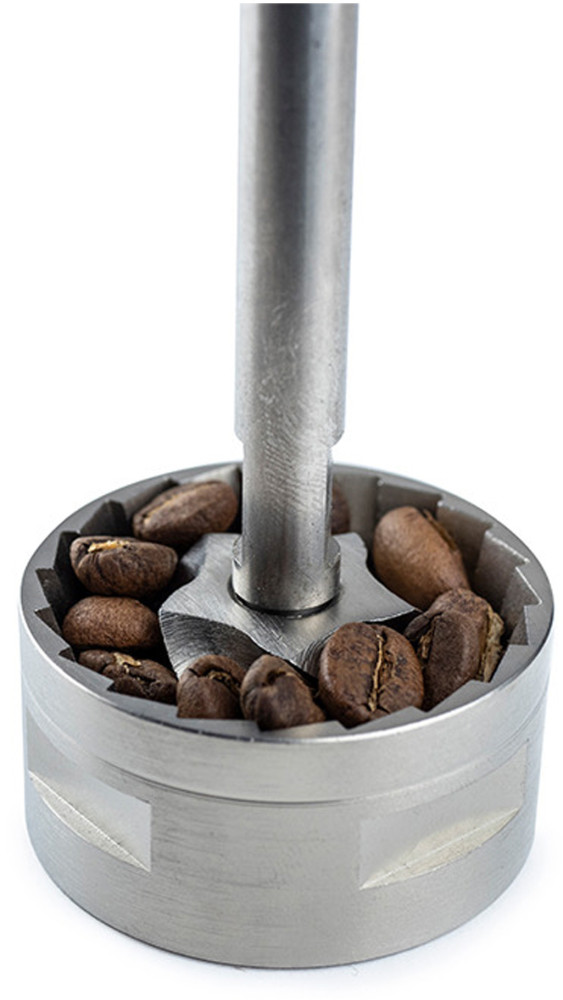 - Wsyp kawę do modułu mielącego, ustaw grubość mielenia i umieść go na zaparzaczu. Przekręcaj korbę, aby zmielić ziarna kawy. Zmielona kawa opada bezpośrednio do zaparzacza.