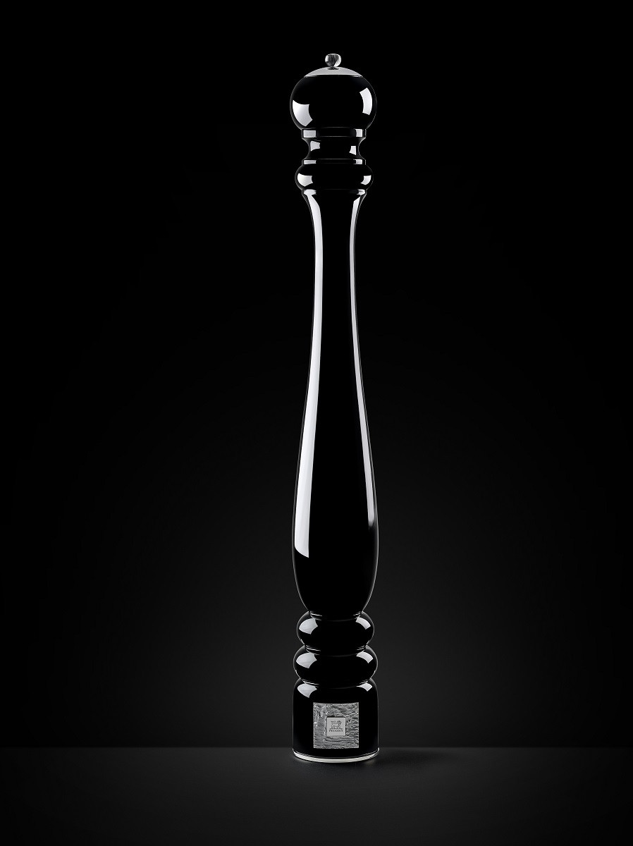 Ten młynek do pieprzu Peugeot jest wyjątkowy zarówno ze względu na swój rozmiar (110cm wysokości), jak i solidne, jakościowe drewno uformowane z jednego kawałka. Głęboka czerń i wykończenie w wysokim połysku, w harmonii z chromowaną nasadą oraz podstawą sprawia, że młynek ten jest produktem ekskluzywnym.