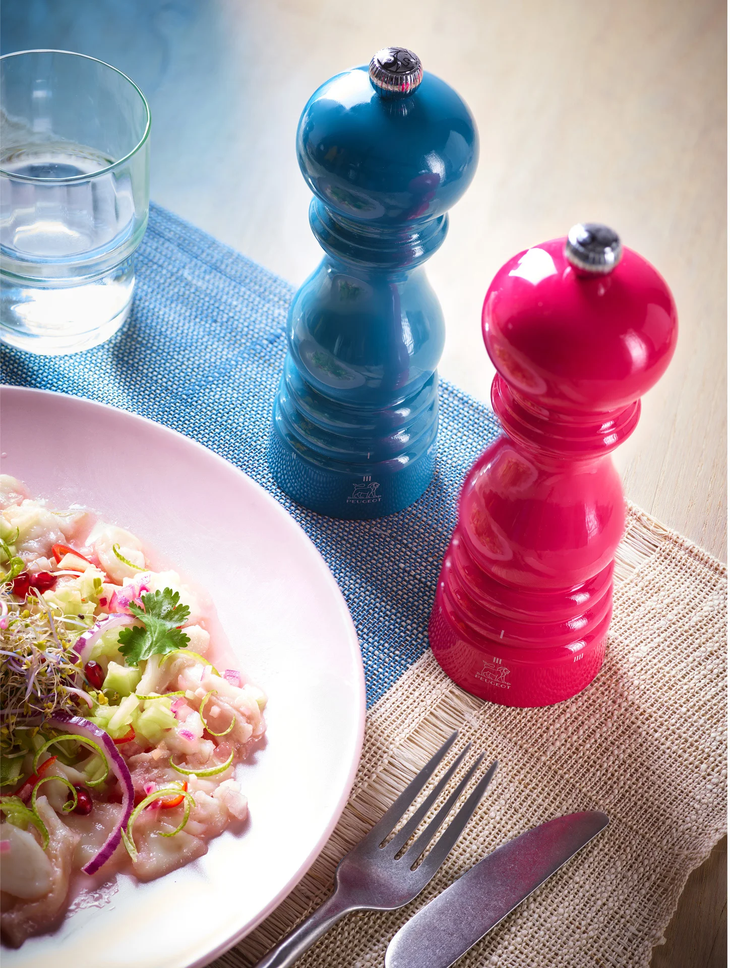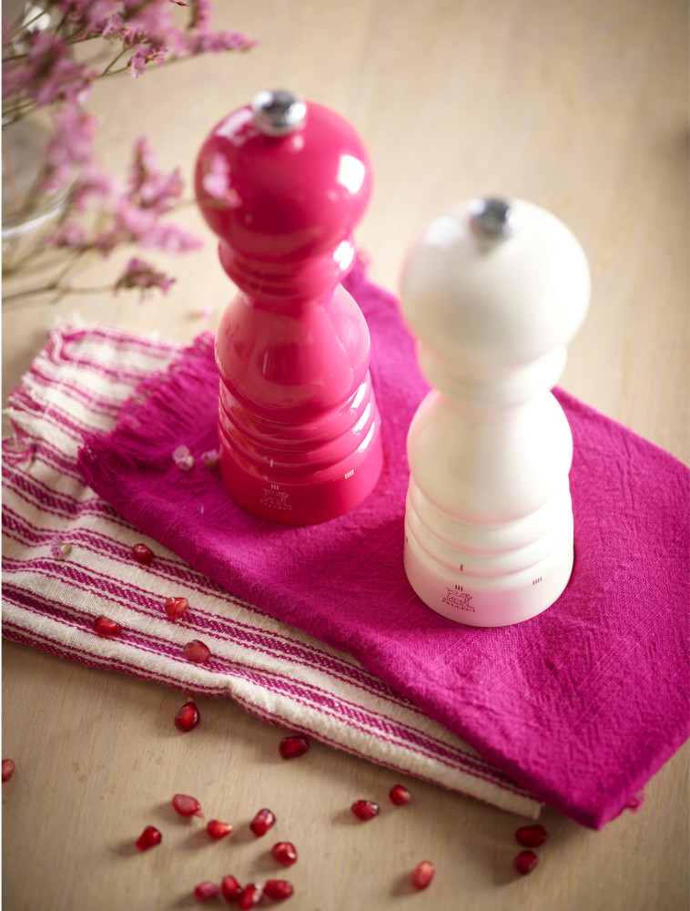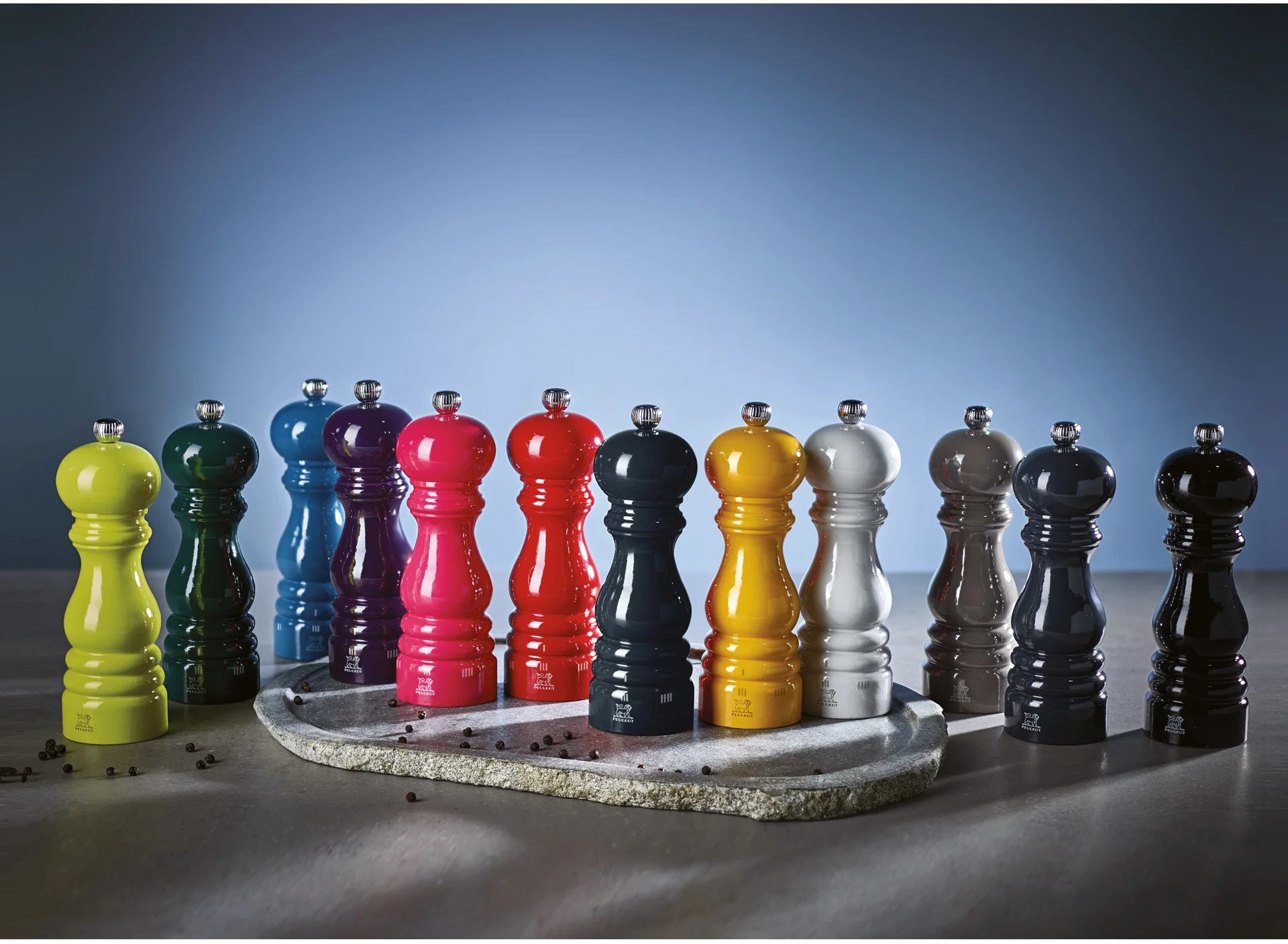 Młynek Peugeot Paris-rama o kultowym kształcie, któremu nadano nowoczesne wykończenie dzięki ultramodnymi kolorom. Energetyczne kolory i lakierowanie na wysoki połysk rozpali namiętność jedzenia i przyciągnie spojrzenia pełne zachwytu. Jego ergonomiczny kształt sprawia, że jest niezwykle wygodny w użyciu. Równie piękny, jak funkcjonalny stanie się jednym z nieocenionych sprzymierzeńców Twojej kuchni.