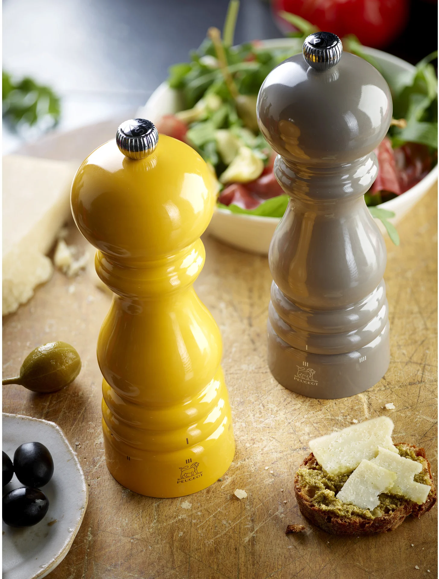 Młynek Peugeot Paris-rama o kultowym kształcie, któremu nadano nowoczesne wykończenie dzięki ultramodnymi kolorom. Energetyczne kolory i lakierowanie na wysoki połysk rozpali namiętność jedzenia i przyciągnie spojrzenia pełne zachwytu. Jego ergonomiczny kształt sprawia, że jest niezwykle wygodny w użyciu. Równie piękny, jak funkcjonalny stanie się jednym z nieocenionych sprzymierzeńców Twojej kuchni.