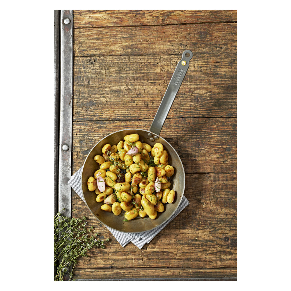 Patelnia MINERAL B marki DE BUYER to prawdziwy skarb kulinarny dla miłośników kuchni, którzy cenią sobie tradycyjne podejście do gotowania.