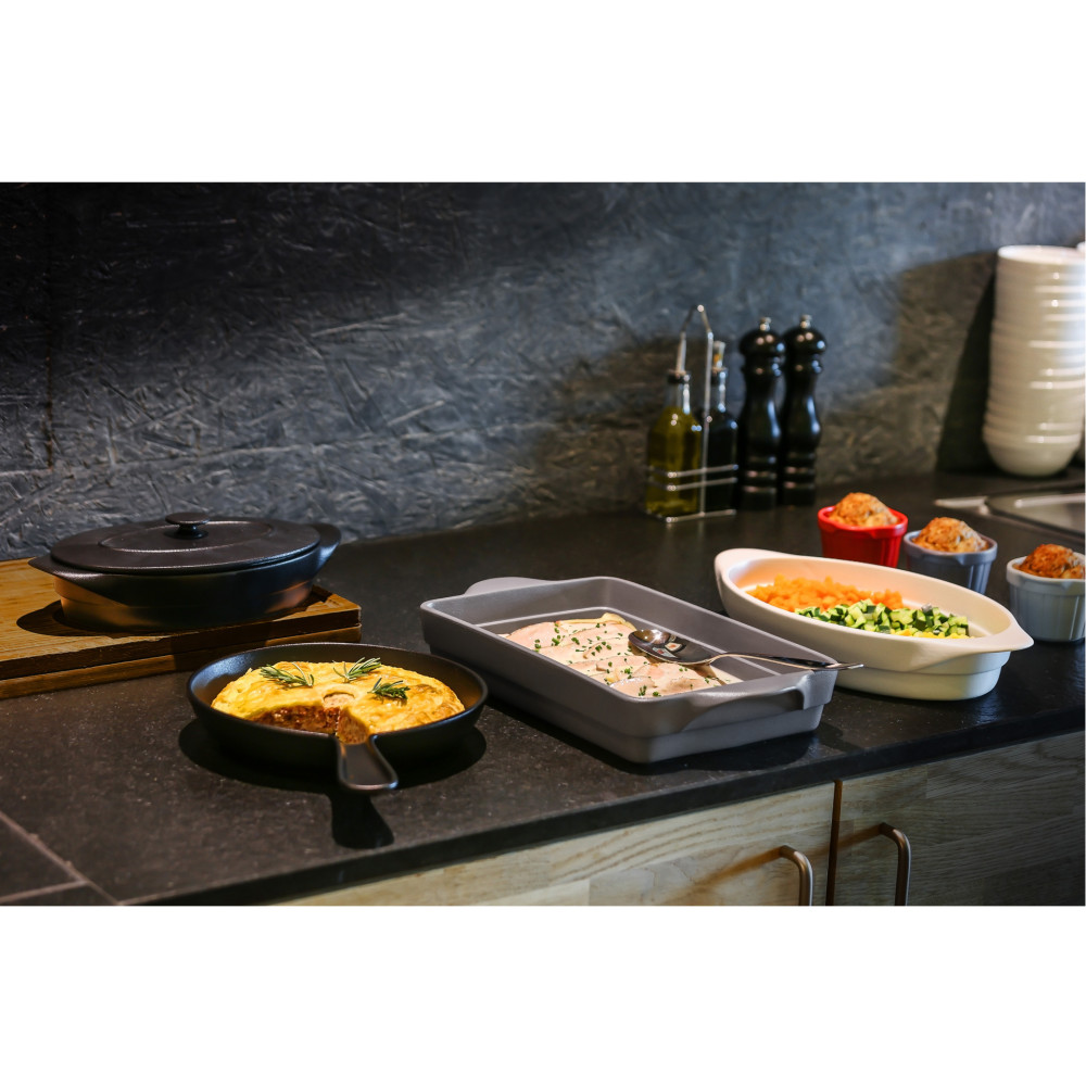 Linia porcelany RAK CHEF’S FUSION oferuje idealne do gotowania i utrzymywania temperatury porcelanowe kociołki, brytfanny, wazy, patelnie i mini patelnie, w 4 kolorach matowej glazury: Wulkanu, Magmy, Skały i Piasku. To kolekcja czerpiąca inspirację z materii mineralnej. Kolory pięknie się ze sobą komponują lub mogą być oryginalnym uzupełnieniem zastawy z białej porcelany. Prosta forma oraz surowa faktura powierzchni kontrastuje z wyrafinowanymi składanikami potrawy, dostarczając wyjątkowych doznań kulinarnych.