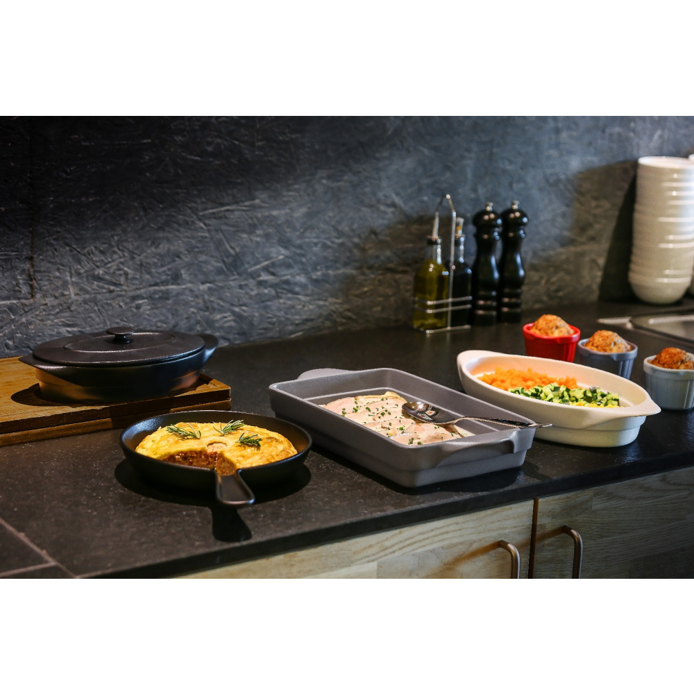 Linia porcelany RAK CHEF’S FUSION oferuje idealne do gotowania i utrzymywania temperatury porcelanowe kociołki, brytfanny, wazy, patelnie i mini patelnie, w 4 kolorach matowej glazury: Wulkanu, Magmy, Skały i Piasku. To kolekcja czerpiąca inspirację z materii mineralnej. Kolory pięknie się ze sobą komponują lub mogą być oryginalnym uzupełnieniem zastawy z białej porcelany. Prosta forma oraz surowa faktura powierzchni kontrastuje z wyrafinowanymi składanikami potrawy, dostarczając wyjątkowych doznań kulinarnych.