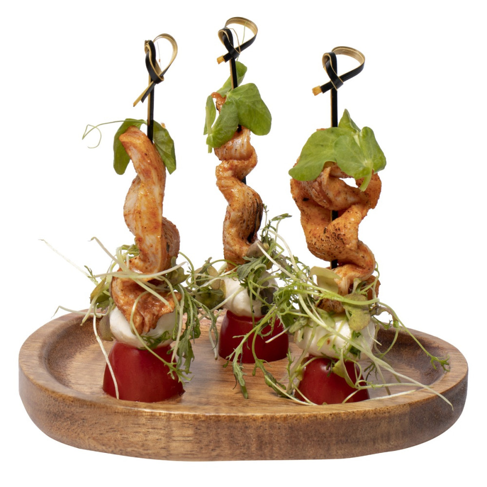 Patyczki bambusowe to idealna propozycja na serwowanie wszelkiego rodzaju przystawek, przekąsek, koreczków, roladek czy hamburgerów. Z pewnością uatrakcyjnią przekąski na jeden kęs, nadając im nowoczesny wygląd. Są ekologiczne, biodegradowalne, w pełni naturalne. Patyczki bambusowe są bardziej trwałe i elastycznie niż klasyczne drewniane wykałaczki. Przeznaczone są do kontaktu z żywnością i cechują się większą trwałością niż klasyczne drewniane wykałaczki.