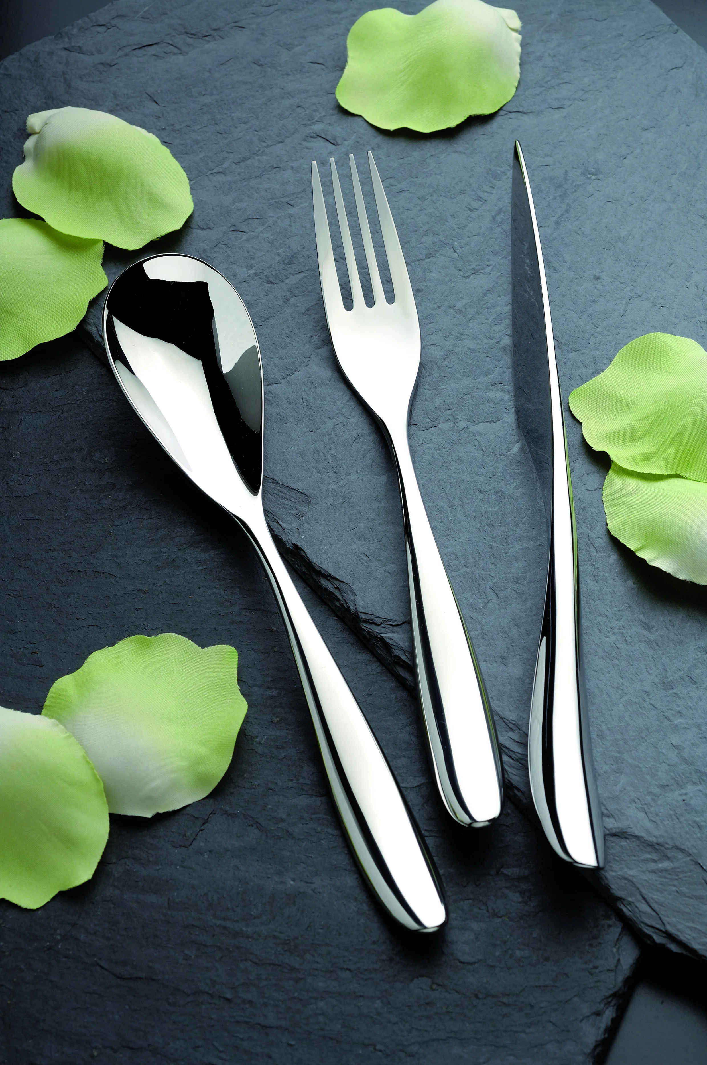 PETALESztućce o nowoczesnej lekkiej, „falującej” linii bez dodatkowych ozdób. To niespotykane wykończenie rękojeści w formie fali oraz bardzo oryginalne, płynne połączenie górnej części. Lekko uniesione zakończenie rękojeści nadaje szczególnej lekkości. W linii tej znajdziesz sztućce przystawkowe, sztućce do ryb oraz nóż do masła.