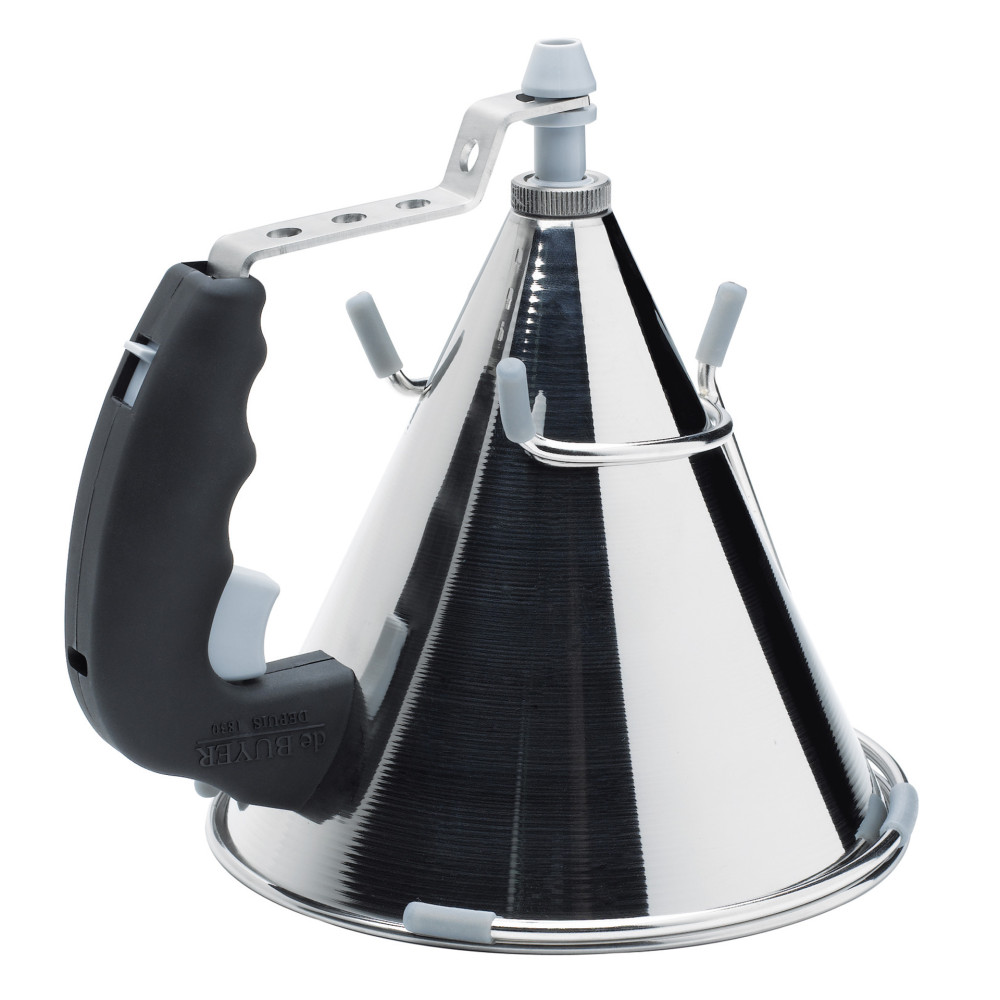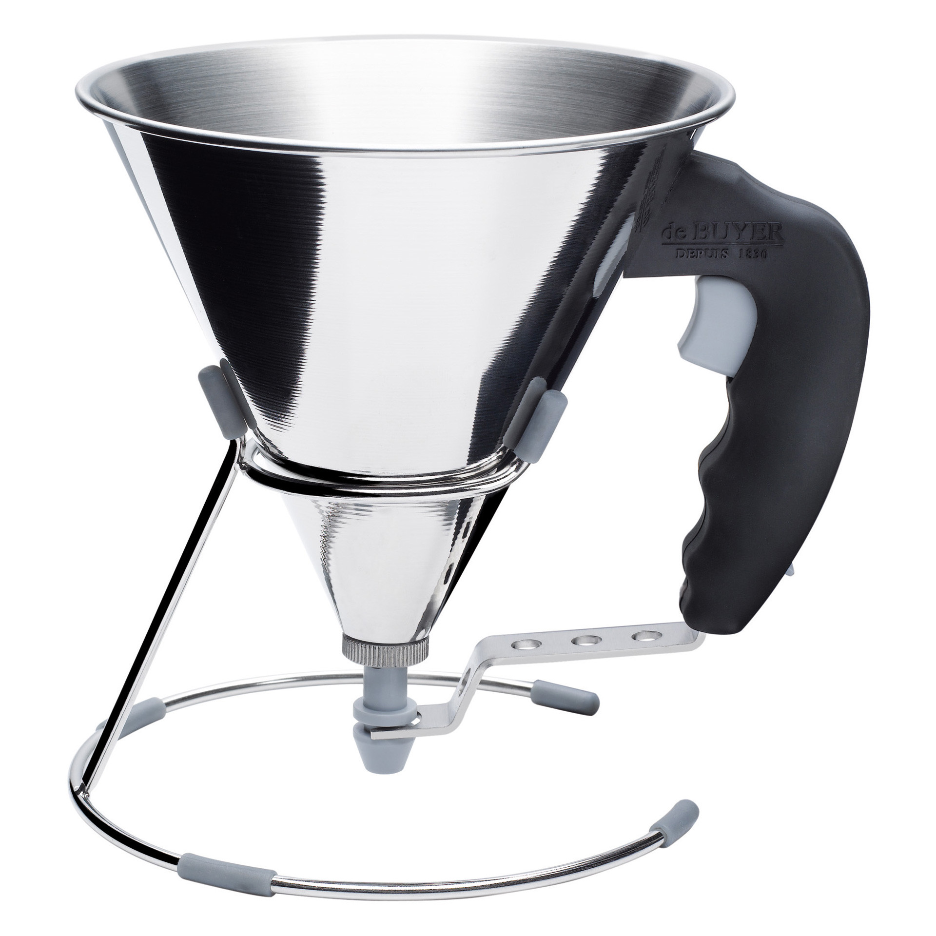 Zestaw składa się z lejka i stojaka, który dzięki silikonowym nakładkom jest stabilny.