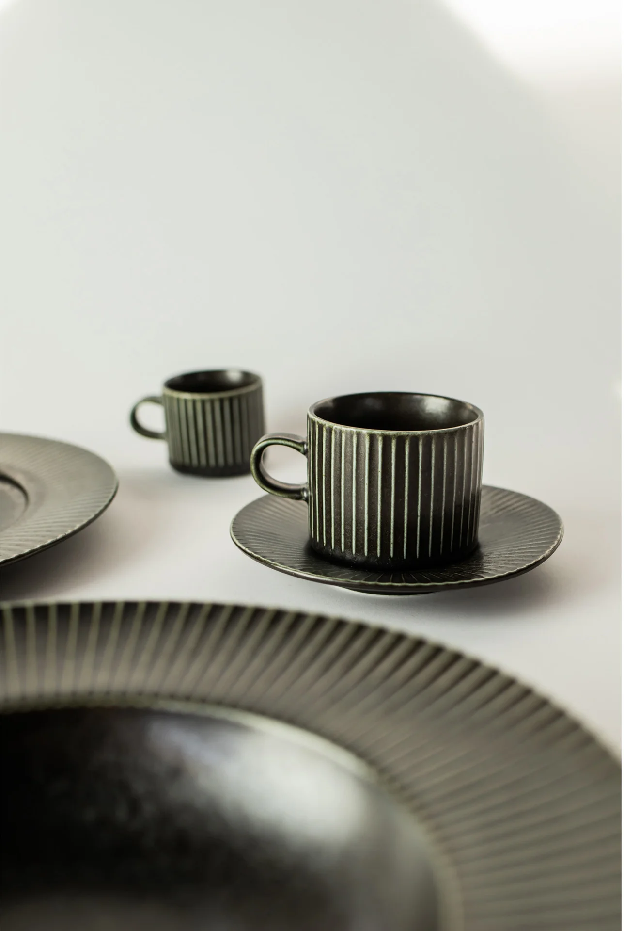 Kolekcja PLISSE marki Verlo to doskonały przykład porcelany, która zachwyca swoją klasyczną elegancją. Jej piękny kolor głębokiego grafitu ujawnia subtelne niuanse szkliwienia, które pod wpływem światła nadają jej wyjątkowego charakteru. To właśnie ta zmienność pod wpływem światła czyni tę porcelanę niezwykłą.