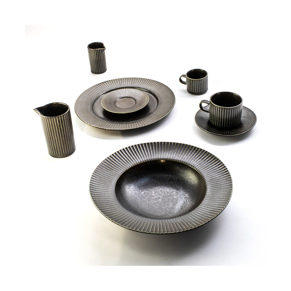 Kolekcja PLISSE marki Verlo to doskonały przykład porcelany, która zachwyca swoją klasyczną elegancją. Jej piękny kolor głębokiego grafitu ujawnia subtelne niuanse szkliwienia, które pod wpływem światła nadają jej wyjątkowego charakteru. To właśnie ta zmienność pod wpływem światła czyni tę porcelanę niezwykłą.