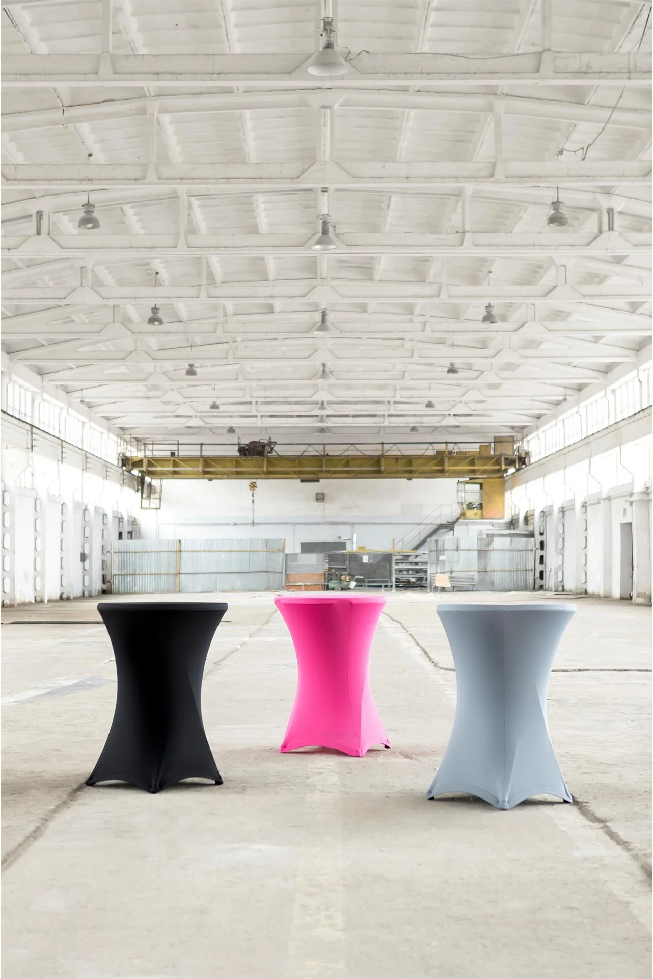 Pokrowce produkowane są w Polsce, z wysokiej jakości dzianiny poliestrowej (96%) z elastanem (4%) o gramaturze 220 g/m². Specjalnie wzmocnione „stopki” pokrowców wykonane z tkaniny odpornej na przetarcia idealnie zakryją nogi stołów i sprawią że pokrowiec będzie optymalnie napięty bez zbędnych marszczeń czy fałd.