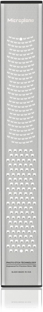 Uznana na całym świecie amerykańska firma Microplane jest producentem z 50-letnim doświadczeniem, który zastosował do produkcji tarek technologię fototrawienia - innowacyjny proces zaprojektowany specjalnie do tworzenia nieskazitelnie ostrych krawędzi tnących. Maleńkie zęby zachowują się jak niezwykle ostre noże do precyzyjnego krojenia składników. Nie rozdzierają i nie zgniatają produktów jak większość dostępnych na rynku „tarek tłoczonych”. Te specjalistyczne ostrza sprawiają, że jedzenie nie przykleja się ani nie blokuje, ale delikatnie przesuwa się po powierzchni cięcia, zapewniając doskonałe rezultaty ścierania na drobne wiórki i nitki, a produkty wilgotne na miazgę.