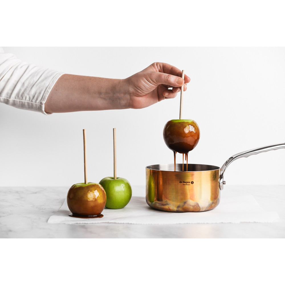Naturalne patynowanie. Nietuzinkowy wygląd miedzianych naczyń, z czasem się zmienia. Miedź utlenia się i zmienia barwę – jest to naturalny proces patynowania. Ciepła barwa „brzoskwiniowej miedzi” nabiera z czasem ciemniejszy odcień, co ma swój urok. Jeżeli chcesz zachować jasny odcień miedzi oraz pozbyć się wszelkiego rodzaju zacieków, przebarwień powstałych podczas gotowania, użyj pasty do czyszczenia miedzi marki de Buyer.