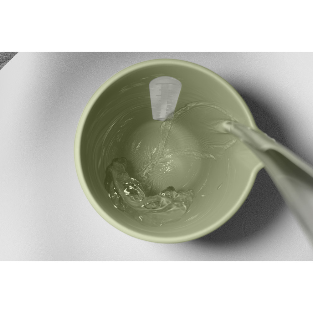 Dzbanek z miarką QB posiada okienko ze skalą pomiaru w ml. Miarka ułatwia przygotowanie potraw i wypieków. Umożliwia precyzyjne odmierzanie produktów sypkich jak i płynnych. Niezastąpiona podczas gotowania, gdy liczy się precyzja w łączeniu składników. Dobrze wyprofilowany dzióbek zapobiega kapaniu i spływaniu płynów. Antypoślizgowa podstawa doskonale stabilizuje dzbanek.