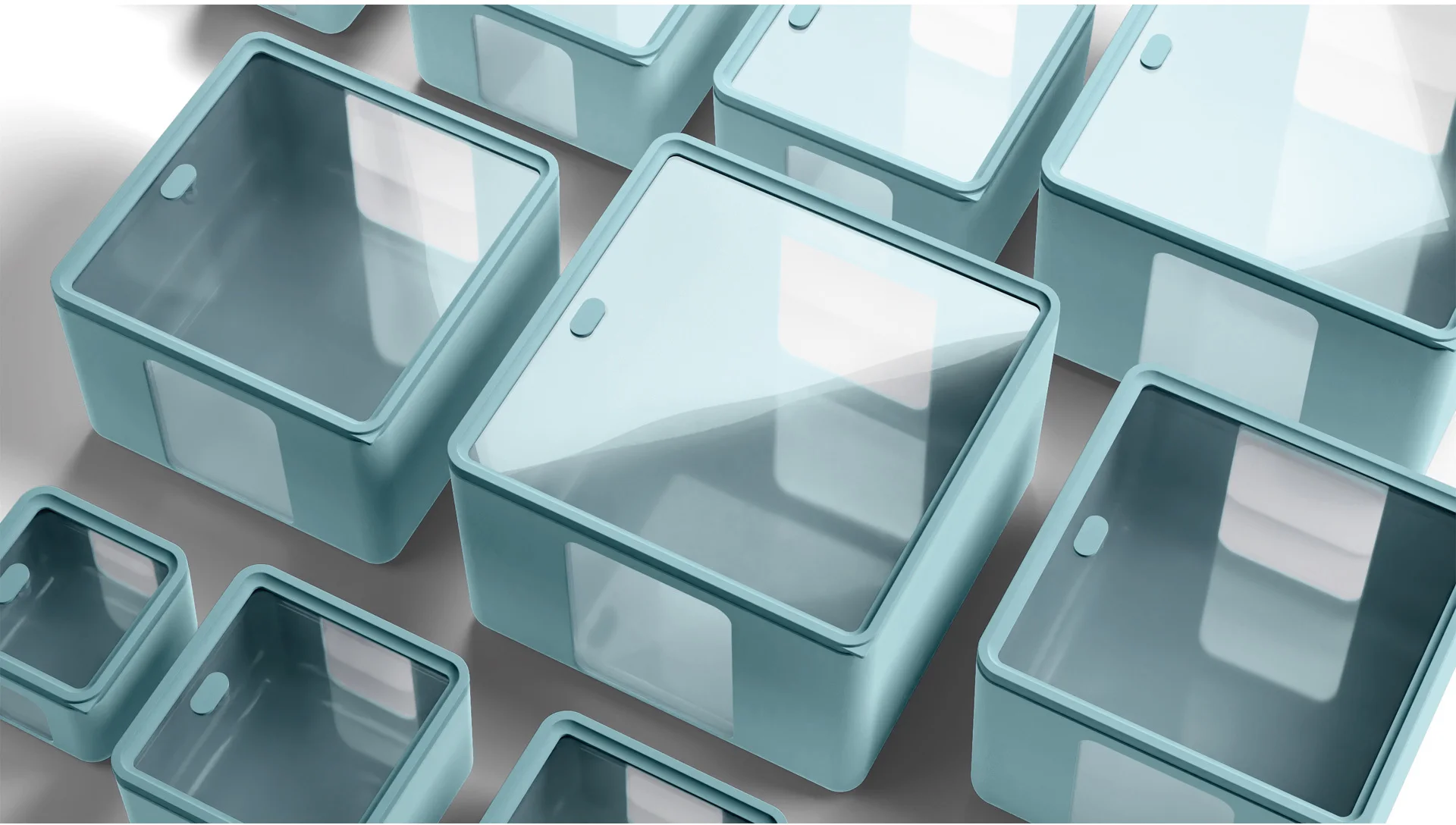 Sześć pastelowych kolorów, można ze sobą łączyć, tworząc ciekawe kompozycje. Okienka boczne oraz przezroczysta pokrywka pozwalają łatwo zobaczyć zawartość. Pojemniki w trzech różnych rozmiarach można wkładać jeden w drugi, co pozwala na efektywne przechowywanie i oszczędność miejsca.