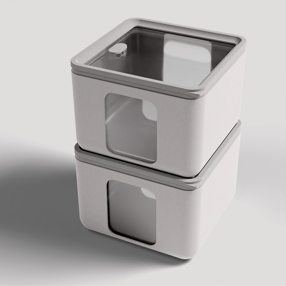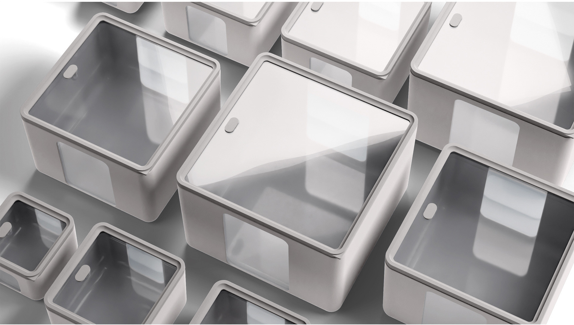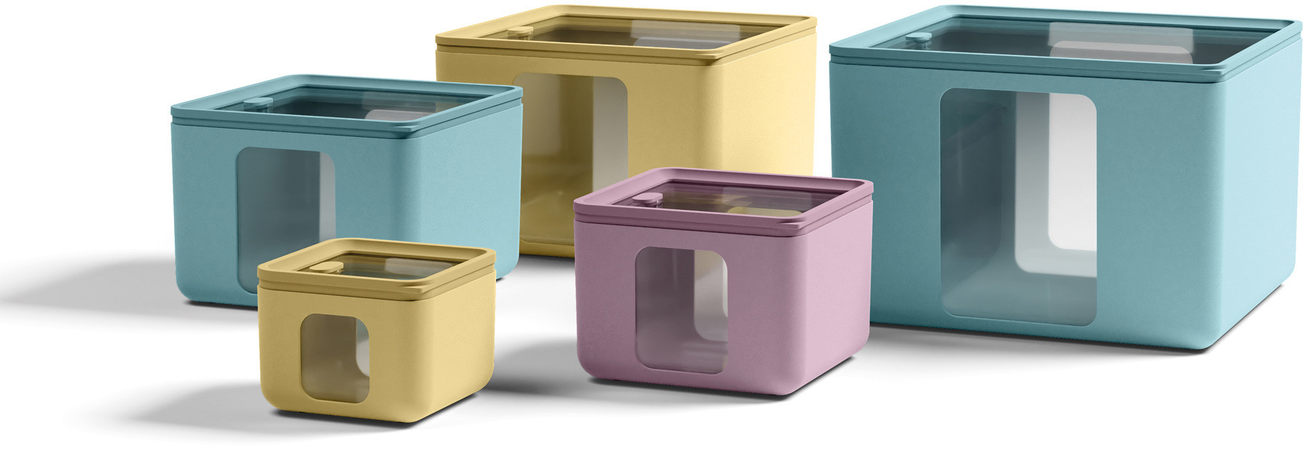 Zestaw pojemników dostępny jest w sześciu pastelowych kolorach, które można ze sobą łączyć, tworząc ciekawe kompozycje. Okienka boczne oraz przezroczysta pokrywka pozwalają łatwo zobaczyć zawartość. Pojemniki w trzech różnych rozmiarach można wkładać jeden w drugi, co pozwala na efektywne przechowywanie i oszczędność miejsca.