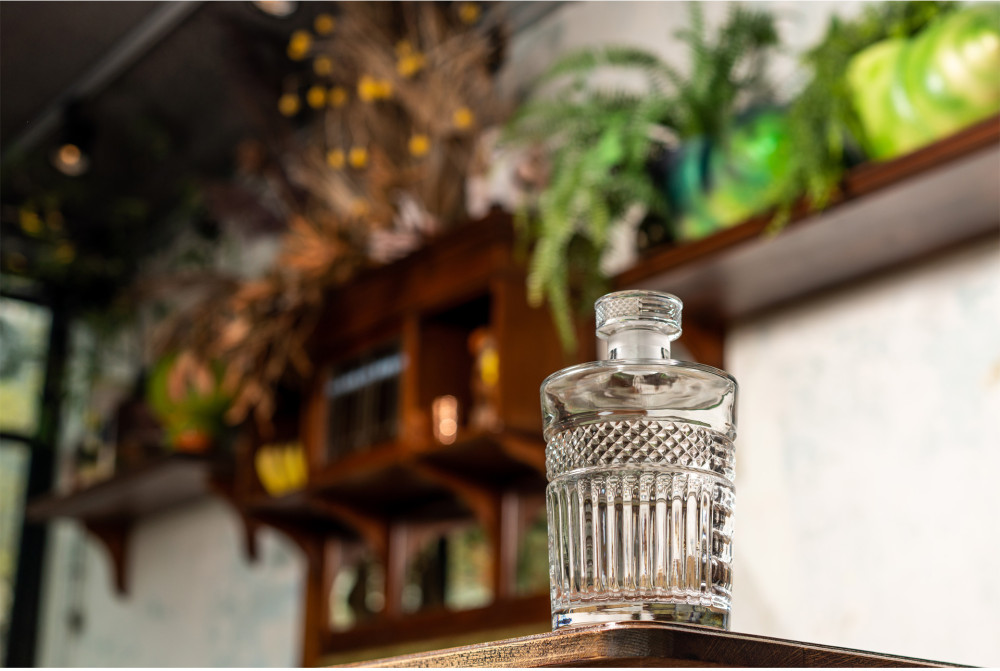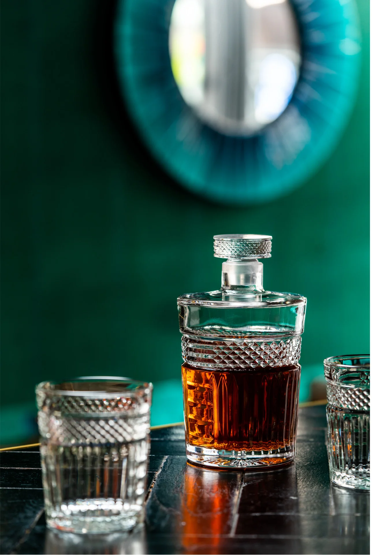 Karafka ze szklanym korkiem - doskonała do whisky, wódki, ginu, rumu, tequili czy bourbona. W połączeniu ze szklankami DOF tworzy efektowny zestaw w stylu vintage.