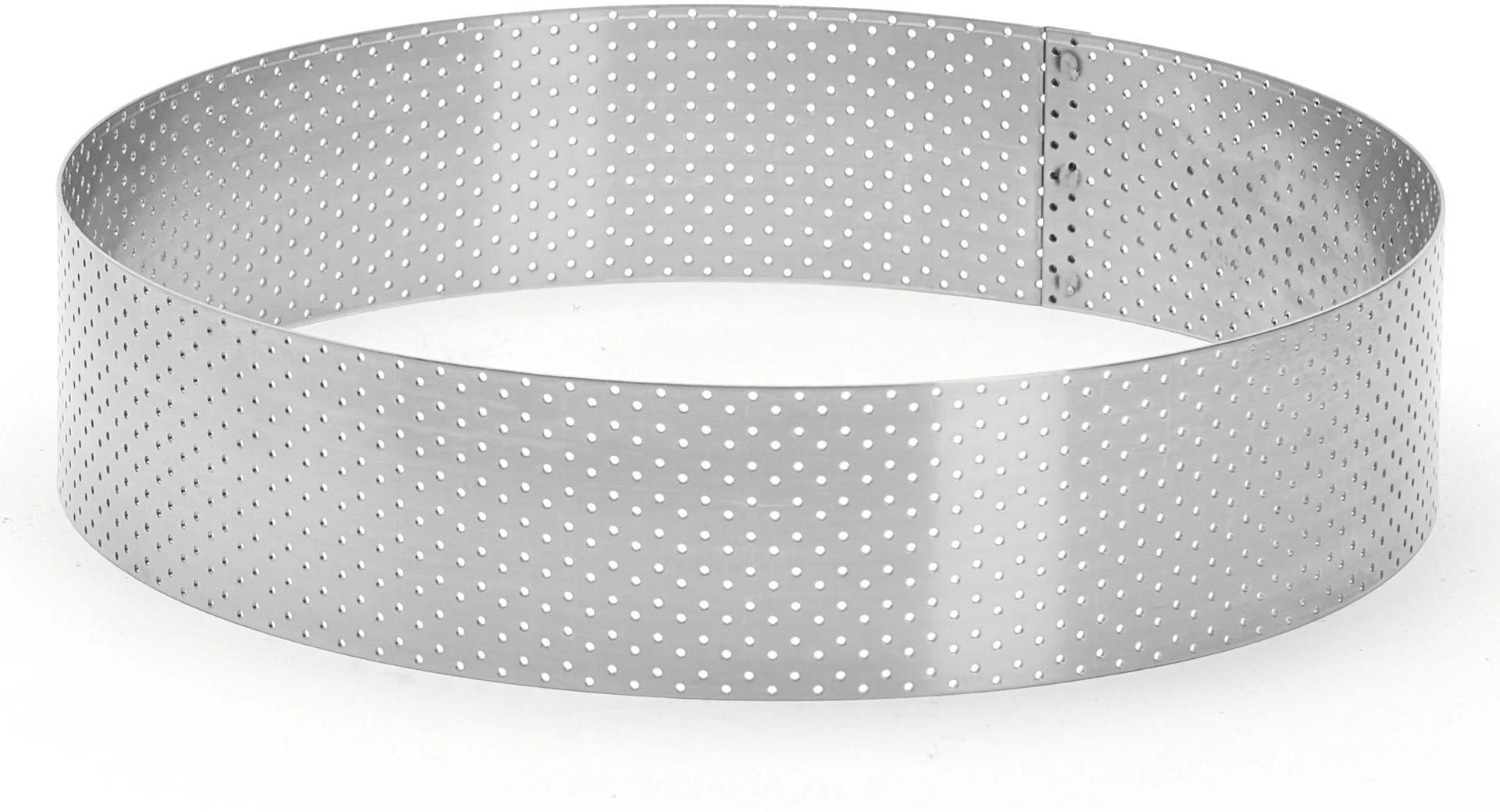Rant perforowany wykonany z najwyższej jakości stali nierdzewnej, idealny do wypieku tart, quiche oraz ciasta kruchego czy francuskiego. Nadaje się do intensywnego, profesjonalnego użytku.