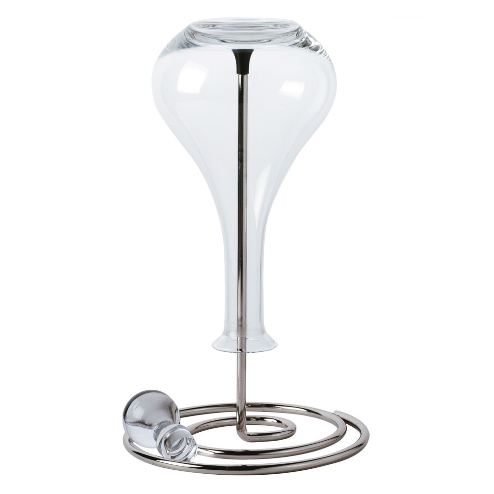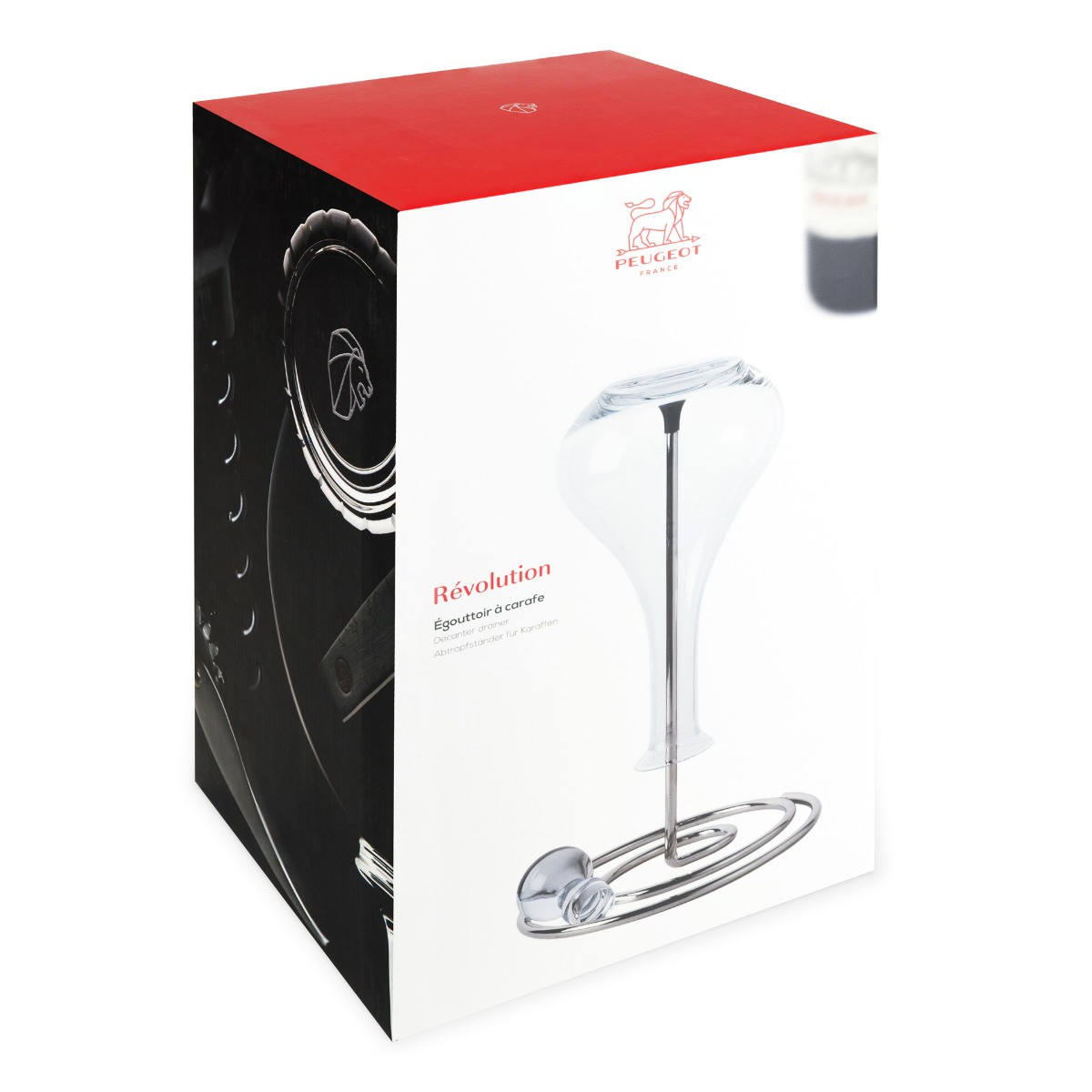 Ociekacz REVOLUTION to niezbędne akcesorium do suszenia karafki bez ryzyka powstania zacieków na szkle. Utrzymuje karafkę do góry dnem, jednocześnie umożliwiając cyrkulację powietrza w środku. Zapewnia w ten sposób doskonałe suszenie, bez pozostawiania śladów zacieków. Jego spiralna konstrukcja została opracowana tak, aby była estetyczna, solidna i wyjątkowo stabilna. Jednocześnie jest też na tyle duży, że zmieści się na nim duża karafka. Końcówka ociekacza posiada gumową nakładkę, aby zapobiec rysowania dna karafki. Do sprawnego i wygodnego czyszczenia karafek polecamy również specjalne kuleczki stalowe Peugeot.