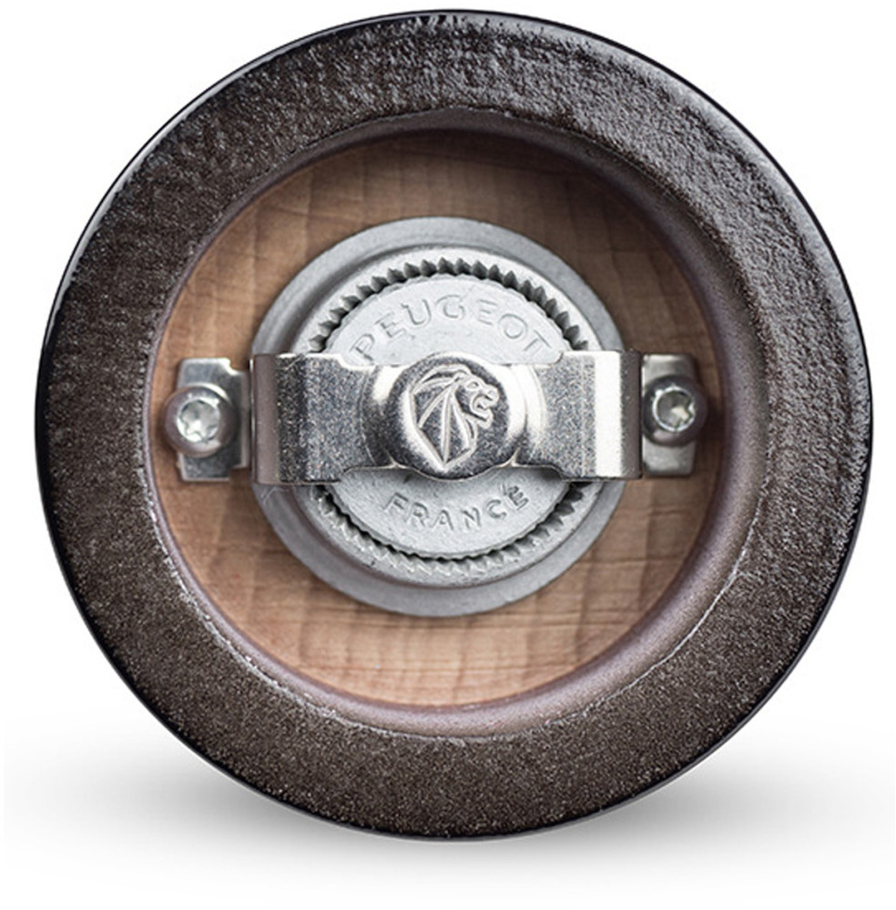 Ustawienie grubości mielenia w młynkach PEUGEOT może odbywać się bądź poprzez tradycyjną płynną regulację dzięki dokręceniu pokrętła w górnej części korpusu, bądź w przypadku młynków z mechanizmem uSelect, przez wybór jednego z 6 stopni grubości mielenia (1 dla najdrobniejszego, 6 dla najgrubszego).