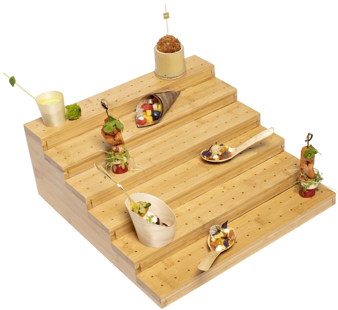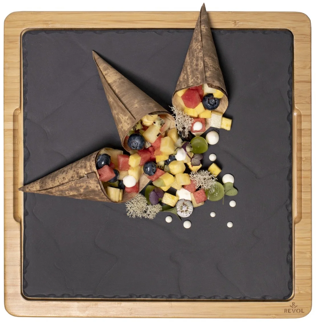 Bambusowe naczynia fingerfood to idealna propozycja na serwowanie wszelkiego rodzaju przystawek, przekąsek, koreczków, roladek czy mini hamburgerów. Z pewnością uatrakcyjnią przekąski na jeden kęs, nadając im nowoczesny wygląd. Są ekologiczne, biodegradowalne, w pełni naturalne. Specjalna struktura powierzchni podkreśla naturalny wygląd i sprawia, że każdy produkt jest wyjątkowy.