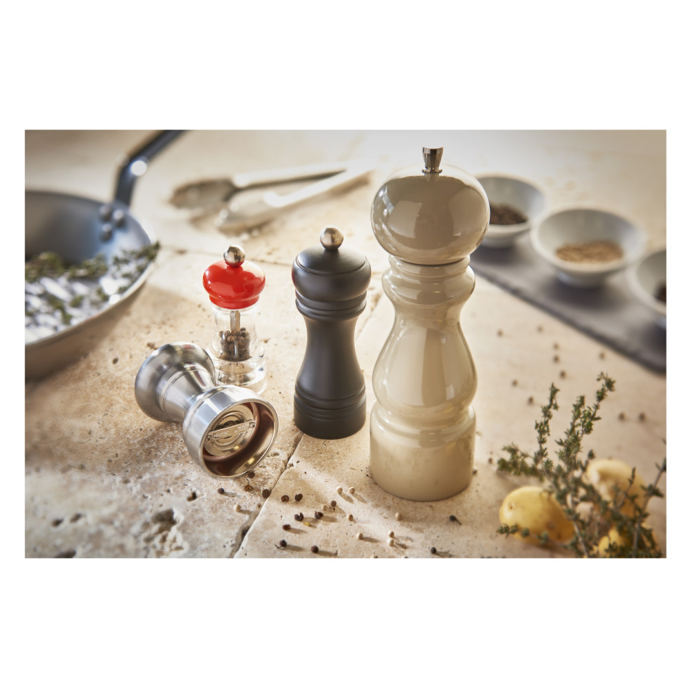 Młynki do pieprzu RUMBA to klasyczne w kształcie, o łagodnie zaokrąglonych liniach uniwersalne młynki, które znajdą zastosowanie w każdej kuchni. Typowy rozmiar, ergonomiczna forma sprawiają, że znakomicie spełnią swoje zadanie zarówno podczas przygotowywania potraw jak i ich doprawiania w trakcie posiłku, jednocześnie będąc cieszącym oko elementem zastawy stołowej. Dostępne w szerokiej palecie kolorów i wykończeń, od naturalnego matowego drewna po lakierowane młynki czerwone, czarne, białe i żółte.