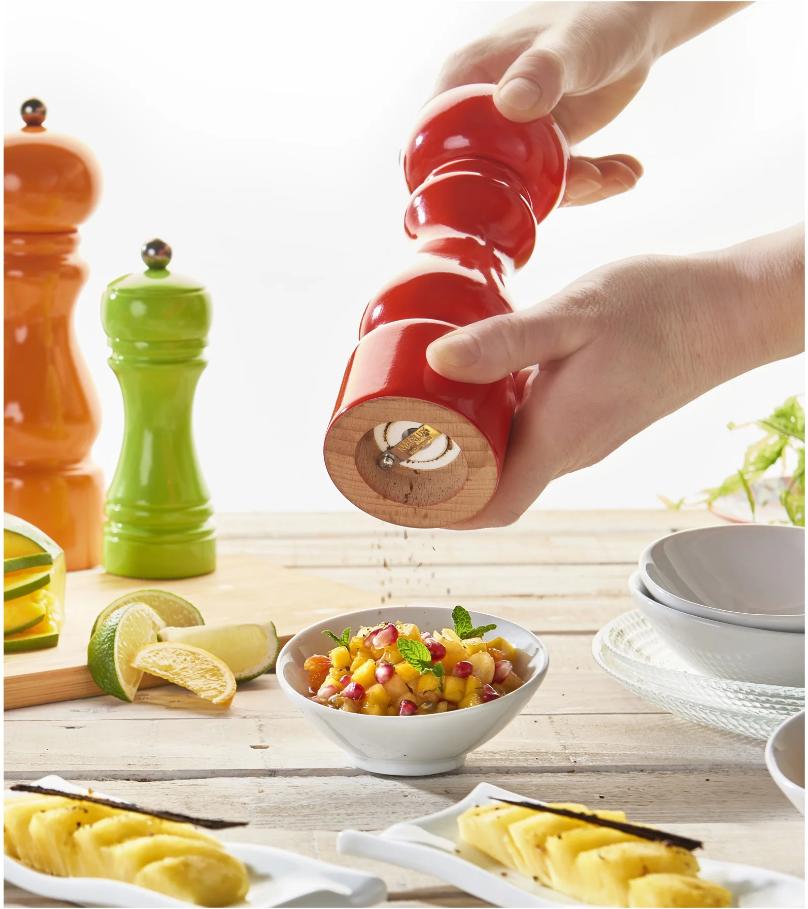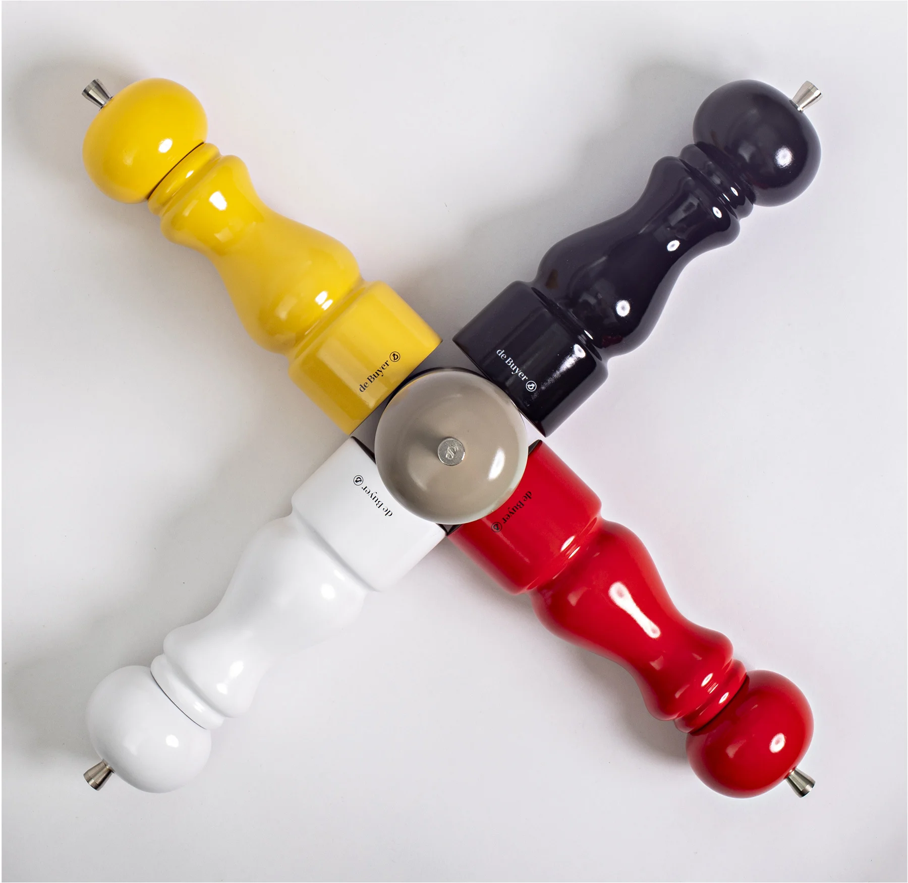 Młynki do soli RUMBA to klasyczne w kształcie, o łagodnie zaokrąglonych liniach uniwersalne młynki, które znajdą zastosowanie w każdej kuchni. Typowy rozmiar, ergonomiczna forma sprawiają, że znakomicie spełnią swoje zadanie zarówno podczas przygotowywania potraw jak i ich doprawiania w trakcie posiłku, jednocześnie będąc cieszącym oko elementem zastawy stołowej. Dostępne w szerokiej palecie kolorów i wykończeń, od naturalnego matowego drewna po lakierowane młynki czerwone, czarne, białe i żółte.
