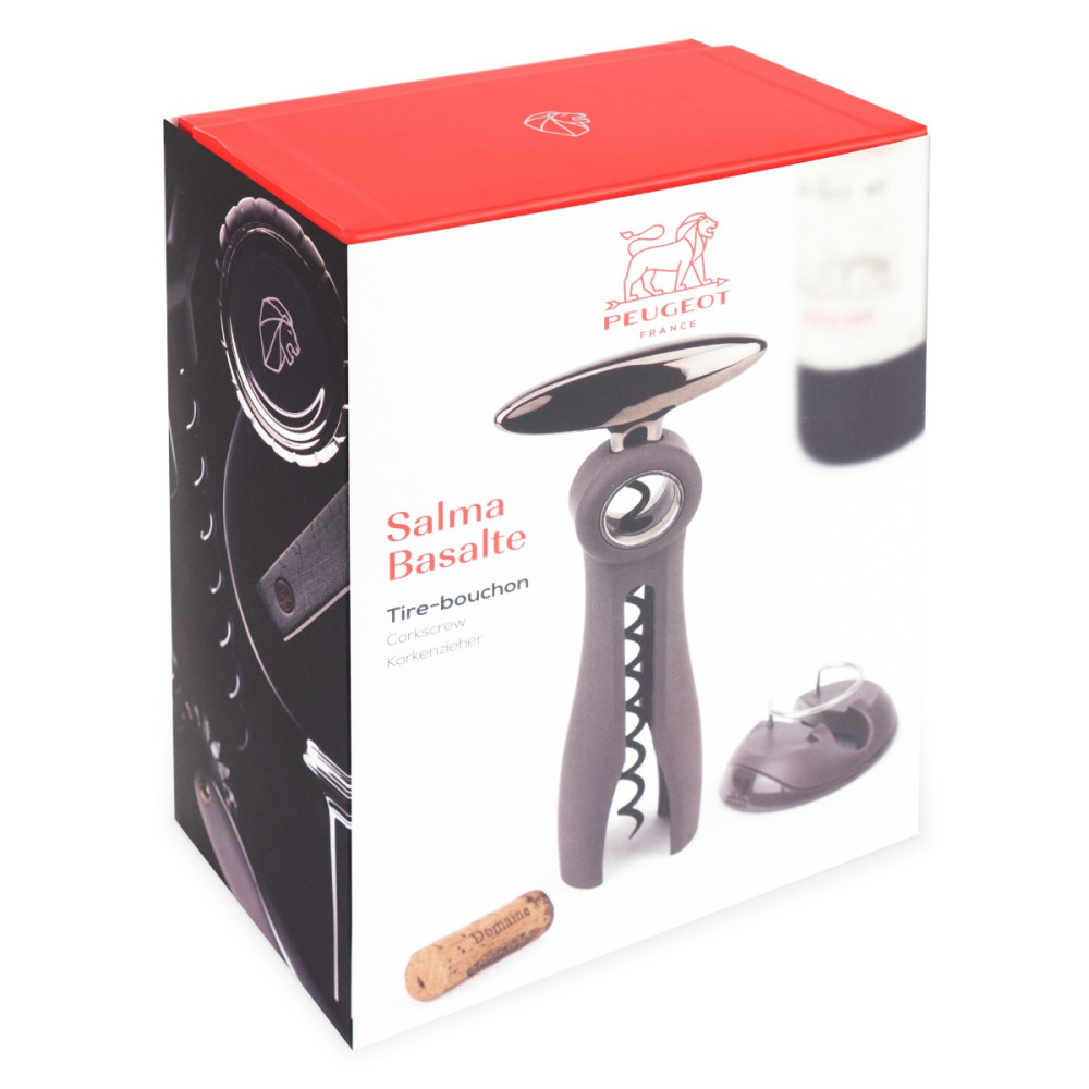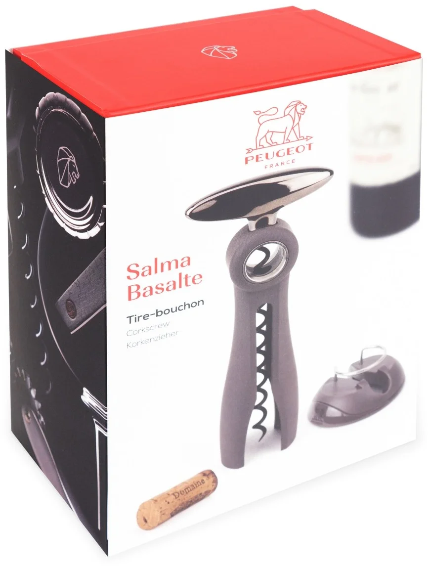 Korkociąg Peugeot Salma jest wyposażony w system spiralny, który jednym ruchem może otworzyć dowolną butelkę. Pomysłowy akcentem jest to, że podstawa korkociągu jest zarazem użytecznym przecinakiem do foli.