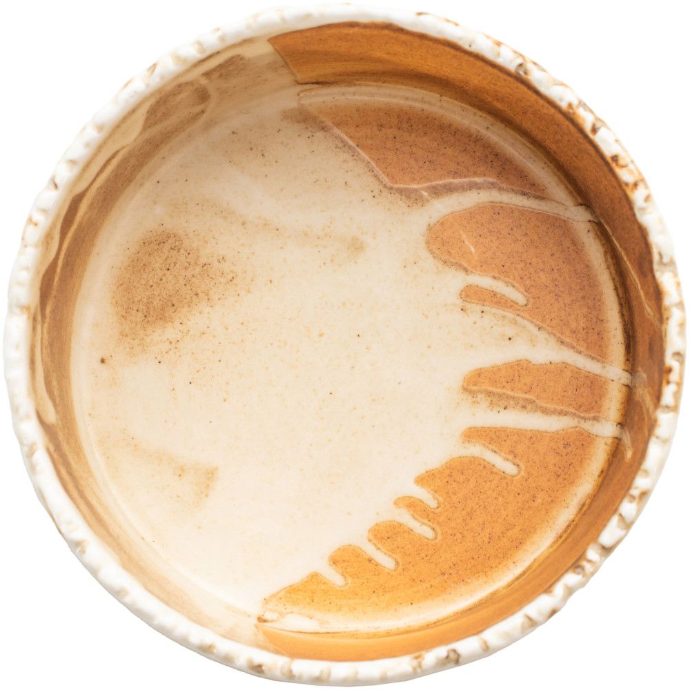 Kolekcja Samto Verlo to unikalne połączenie dwóch kontrastujących struktur porcelany, które zostały pięknie uzupełnione wyrazistymi kolorami. Ciemniejsze, nieco rdzawe wybarwienie i surowa struktura szkliwa doskonale komponują się z efektownym, gładkim naciekiem w kolorze waniliowej bieli. Tworzą one delikatne wypukłości, nadając naczyniom niezwykły efekt wizualny. Naczynia z kolekcji Samto Verlo wyróżniają się także zewnętrznym wykończeniem. Ich surowa powierzchnia posiada lekko chropowaty charakter, dodając rustykalnego uroku. Nieregularnie wykończone ranty stanowią dodatkowy element, który podkreśla indywidualność każdego naczynia.
