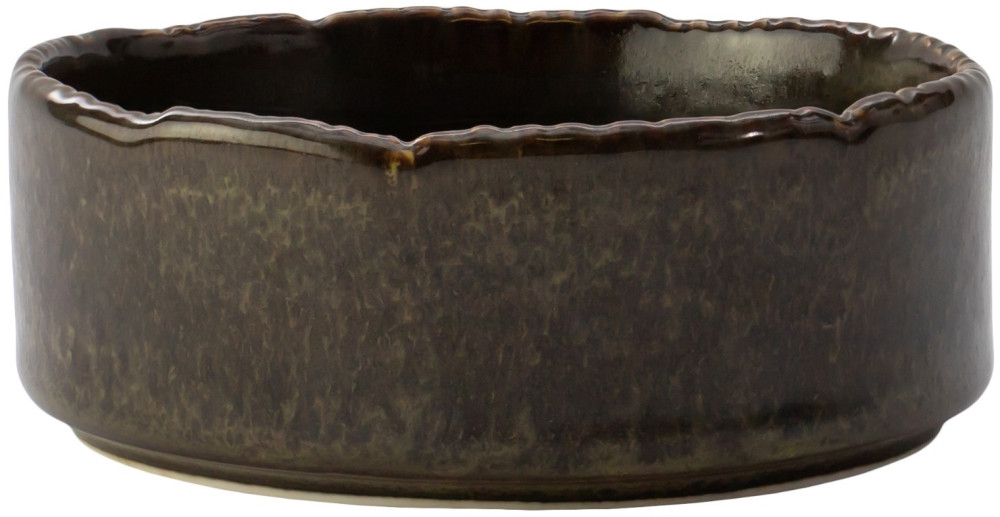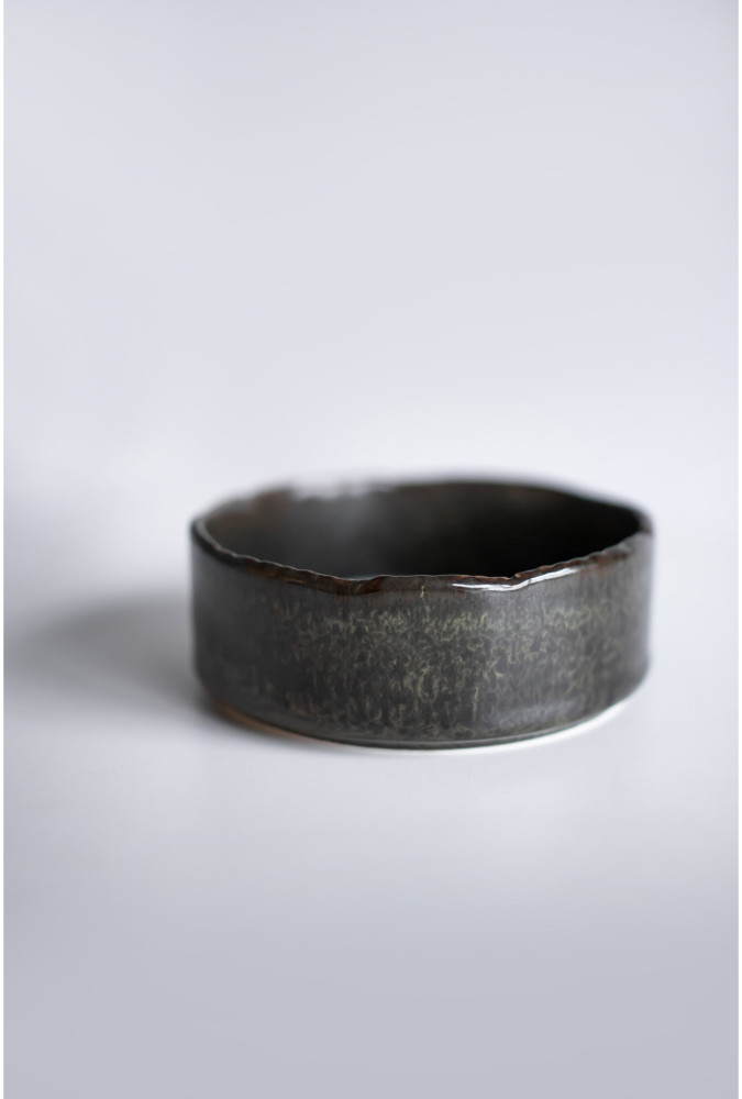 Prosta, minimalistyczna forma tych naczyń oraz ciemna kolorystyka pięknie skomponuje się zarówno w minimalistycznej aranżacji kuchni czy jadali, jak również w bardziej rustykalnych wnętrzach. Subtelne, półmatowe wykończenie naczyń wspaniale podkreśla lekko nakrapianą glazurę i przenikanie się barw. Dodatkowo, nieregularnie wykończone brzegi nadają każdemu naczyniu indywidualny