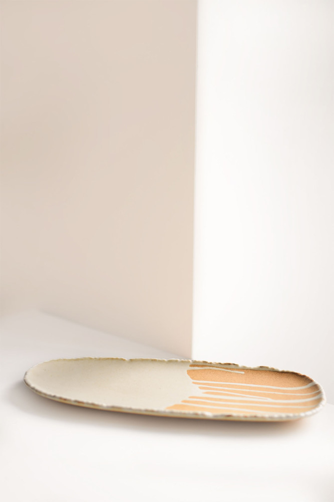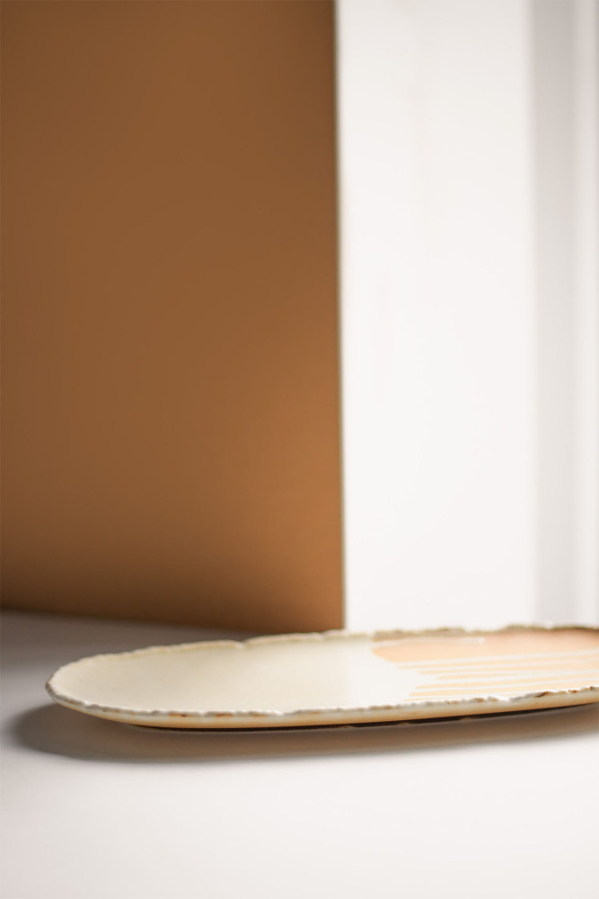 Kolekcja Samto Verlo to unikalne połączenie dwóch kontrastujących struktur porcelany, które zostały pięknie uzupełnione wyrazistymi kolorami. Ciemniejsze, nieco rdzawe wybarwienie i surowa struktura szkliwa doskonale komponują się z efektownym, gładkim naciekiem w kolorze waniliowej bieli. Tworzą one delikatne wypukłości, nadając naczyniom niezwykły efekt wizualny. Naczynia z kolekcji Samto Verlo wyróżniają się także zewnętrznym wykończeniem. Ich surowa powierzchnia posiada lekko chropowaty charakter, dodając rustykalnego uroku. Nieregularnie wykończone ranty stanowią dodatkowy element, który podkreśla indywidualność każdego naczynia.