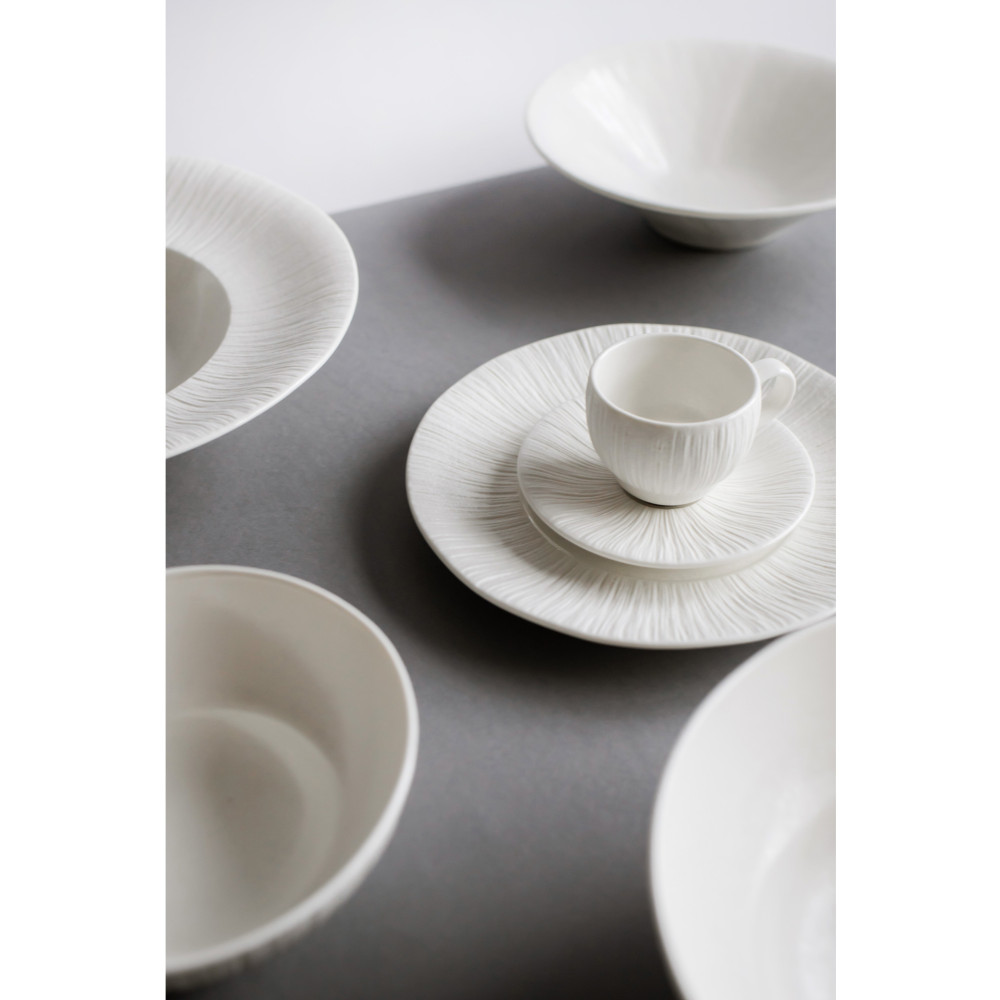 Kolekcja SENSE marki Verlo to przykład porcelany, która zachwyca swoją klasyczną i uniwersalną elegancją. Piękny, kolor złamanej biali z delikatnym odcieniem szarości towarzyszy nam w każdym świetle, ukazując różne subtelne niuanse. To właśnie ta zmienność pod wpływem światła czyni tę porcelanę tak wyjątkową. Charakterystycznym elementem kolekcji SENSE są szerokie dekory w postaci delikatnych ryflowań, które zdobią zewnętrzną część naczyń. To detal, który dodaje kolekcji elegancji i subtelności, zachowując jednocześnie jej uniwersalny charakter. Szkliwienie naczyń jest półmatowe, co nadaje im uniwersalności. Nieregularny kształt rantów naczyń sprawia, że każde z nich jest nieco inne, co dodaje kolekcji SENSE wyjątkowego uroku.