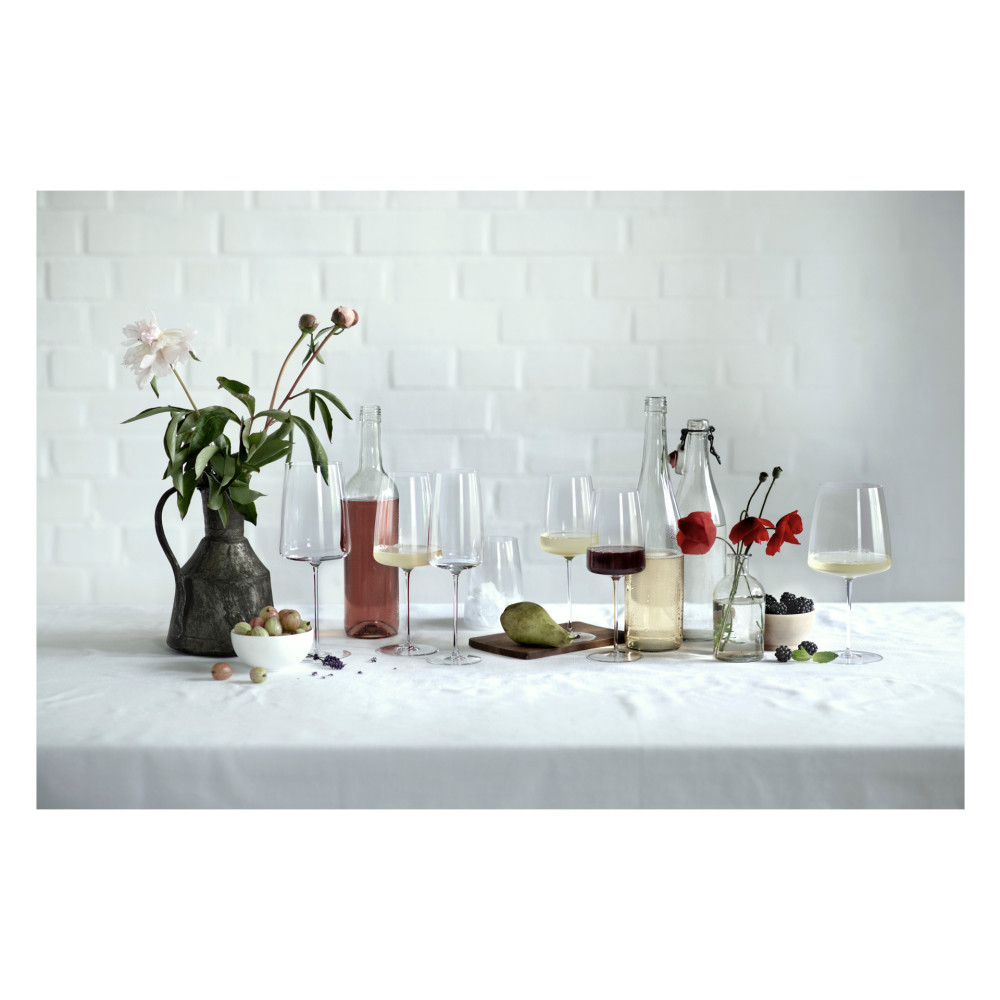Ta filozofia czyni dobór właściwego kieliszka bardzo łatwym i intuicyjnym. Do dobrze zbudowanych win, czy to czerwonych, różowych lub białych właściwym będzie szeroki kształt gwarantujący wystarczającą przestrzeń do rozwinięcia pełnego bukietu. Z drugiej strony dla delikatnych, lekkich odmian, kieliszek o smukłym kształcie z wąską podstawą najlepiej odda nawet najdrobniejsze niuanse.