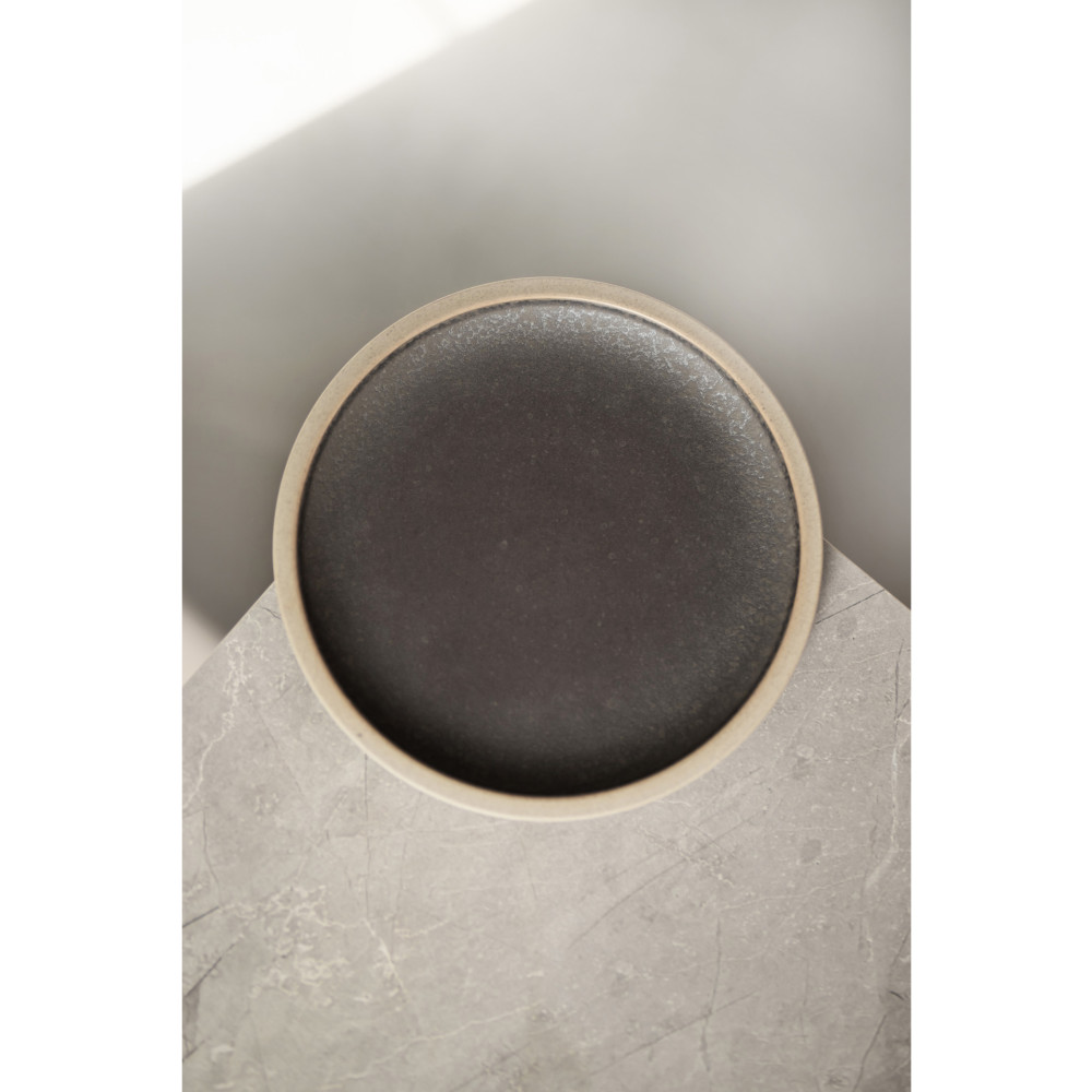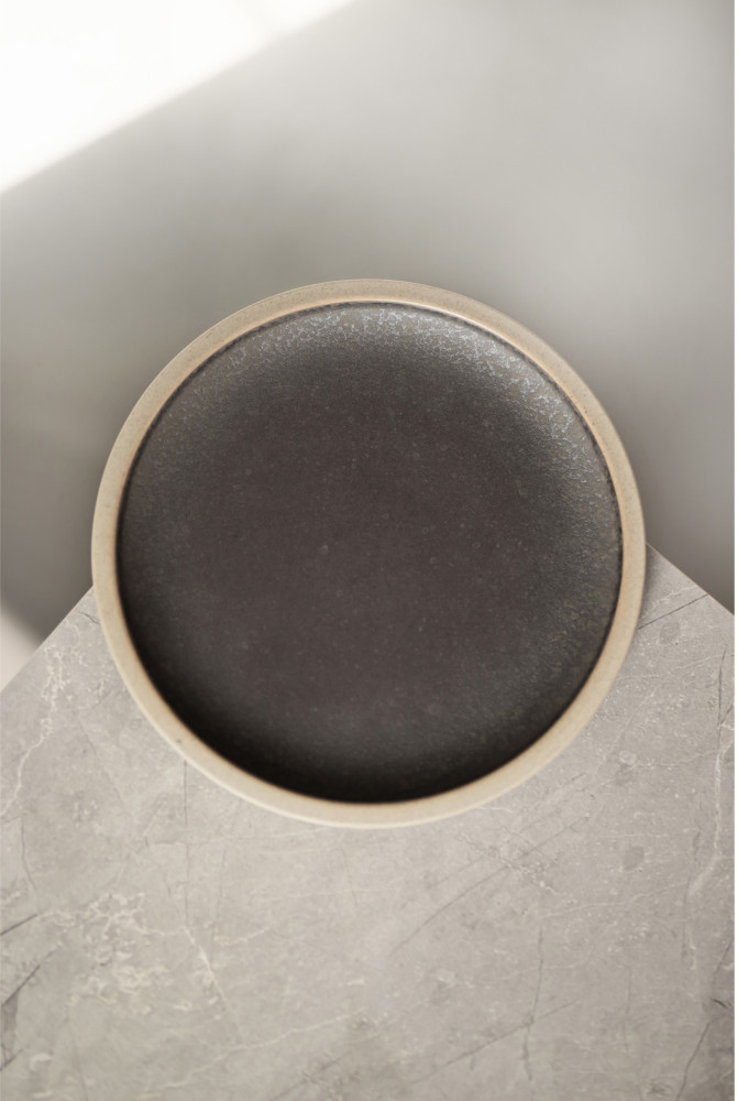 SIMPLY to harmonijne połączenie naturalnego odcienia porcelany, przypominającego barwę piasku pustyni, z ciemnym nieco srebrzystym brązem. Metaliczne zdobienie o nieregularnej strukturze daje wyjątkowy efakt. Surowe, nieco szorstkie wykończenie zarówno na wewnętrznych, jak i zewnętrznych powierzchniach naczyń, nadaje im niepowtarzalnego charakteru. Wewnętrzne zabarwienie w odcieniu metalicznego brązu delikatnie odbija światło, eksponując subtelność tej kolekcji. Charakterystyczną cechą tej porcelany jest również mocno zarysowany, gruby-płaski, niebarwiony rant.