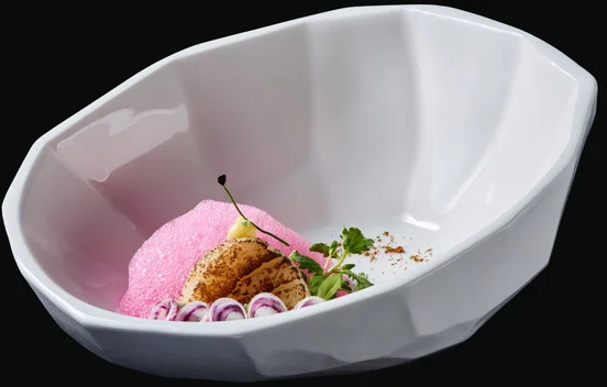 Na kolekcję składają się talerze o nieregularnych kształtach i asymetryczne misy - w trzech kolorach (białym, brązowym i błękitnym).