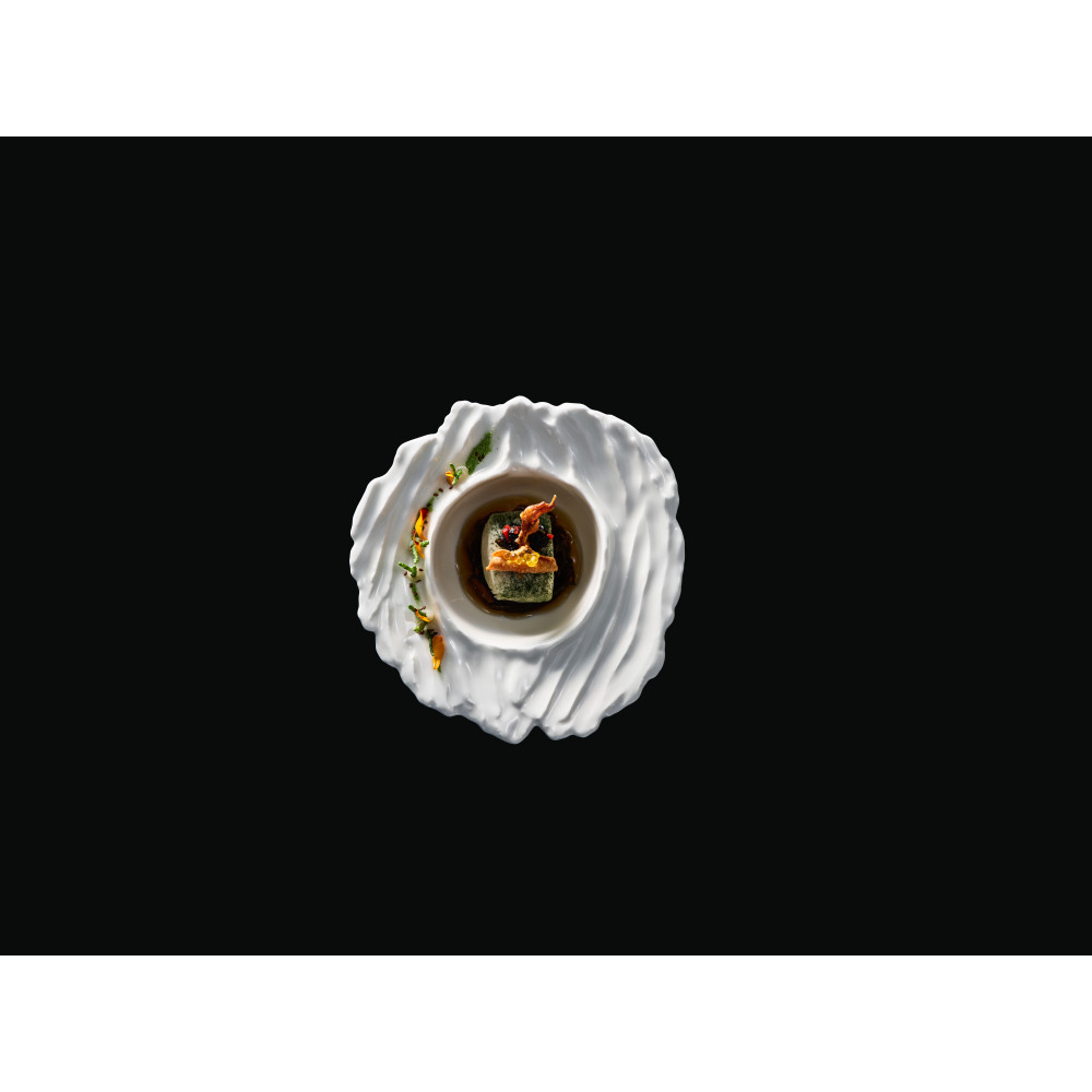 Na kolekcję składają się talerze o nieregularnych kształtach i asymetryczne misy - w trzech kolorach (białym, brązowym i błękitnym).