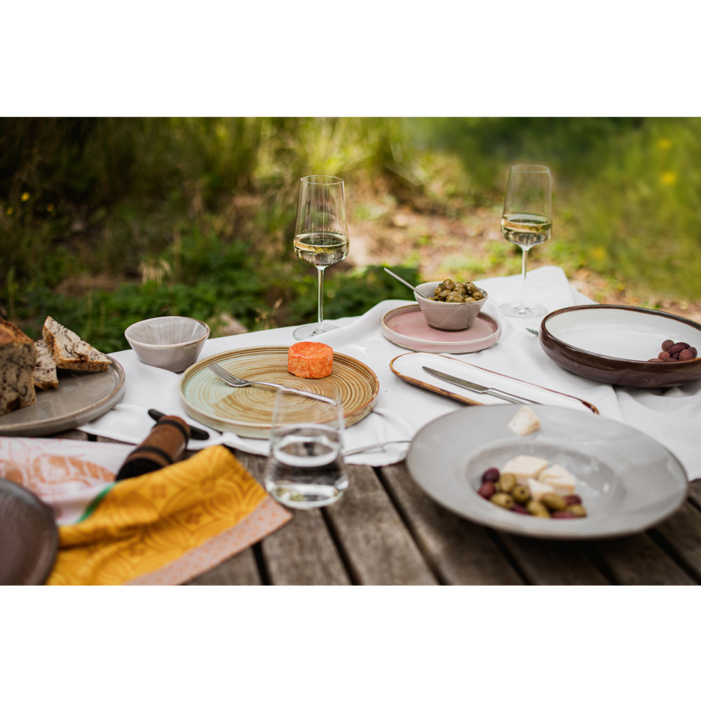 Umiejętne zastosowanie barw i innych komponentów podczas nakładania i wypalania szkliwa reaktywnego powoduje, że naczynia z tej kolekcji mają podobny charakter i doskonale się uzupełniają. Osiągnięty efekt, do złudzenia przypomina naczynia wyprodukowane przez rzemieślnika. Tworzymy w ten sposób unikalne kompozycje, które są ozdobą stołów w nowocześnie urządzonych mieszkaniach i restauracjach.