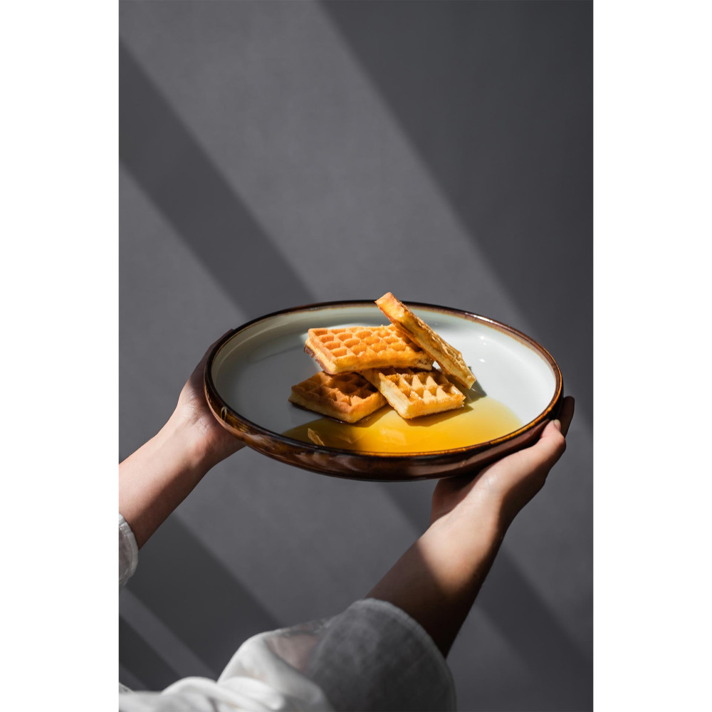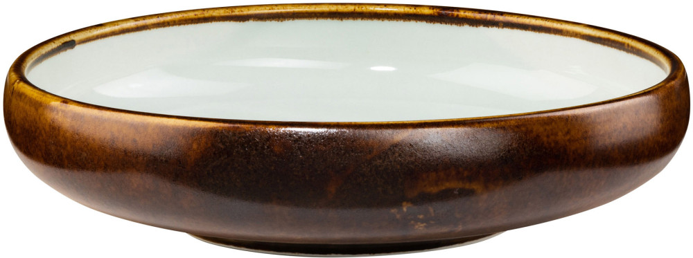 Połączenie dwóch kontrastujących kolorów oraz wysokiego połysku szkliwa daje zachwycający efekt. Mocna forma naczyń i solidna grubość porcelany dodaje tej kolekcji rustykalnego charakteru. Dodatkowy efekt przebarwień i nierównomiernego rozmieszczenia kolorów na zewnętrznej powierzchni naczyń, uzyskany został dzięki specjalnej metodzie wykorzystania szkliwa reaktywnego. W jej wyniku na powierzchni filiżanek, mis, półmisków i talerzy powstają nieregularne dekoracje. Do złudzenia wyglądają jakby powstały w sposób naturalny. Zewnętrzna brązowo-rdzawa barwa przenika delikatnie do wnętrza naczynia i łączy się subtelnie z odcieniem „lodowatej” bieli. Ten niesamowity efekt to połączenie nowoczesności i nawiązanie do tradycyjnych form naczyń. Artystyczne postarzanie porcelany to obecnie bardzo modny trend w wystroju restauracji czy jadalni.
