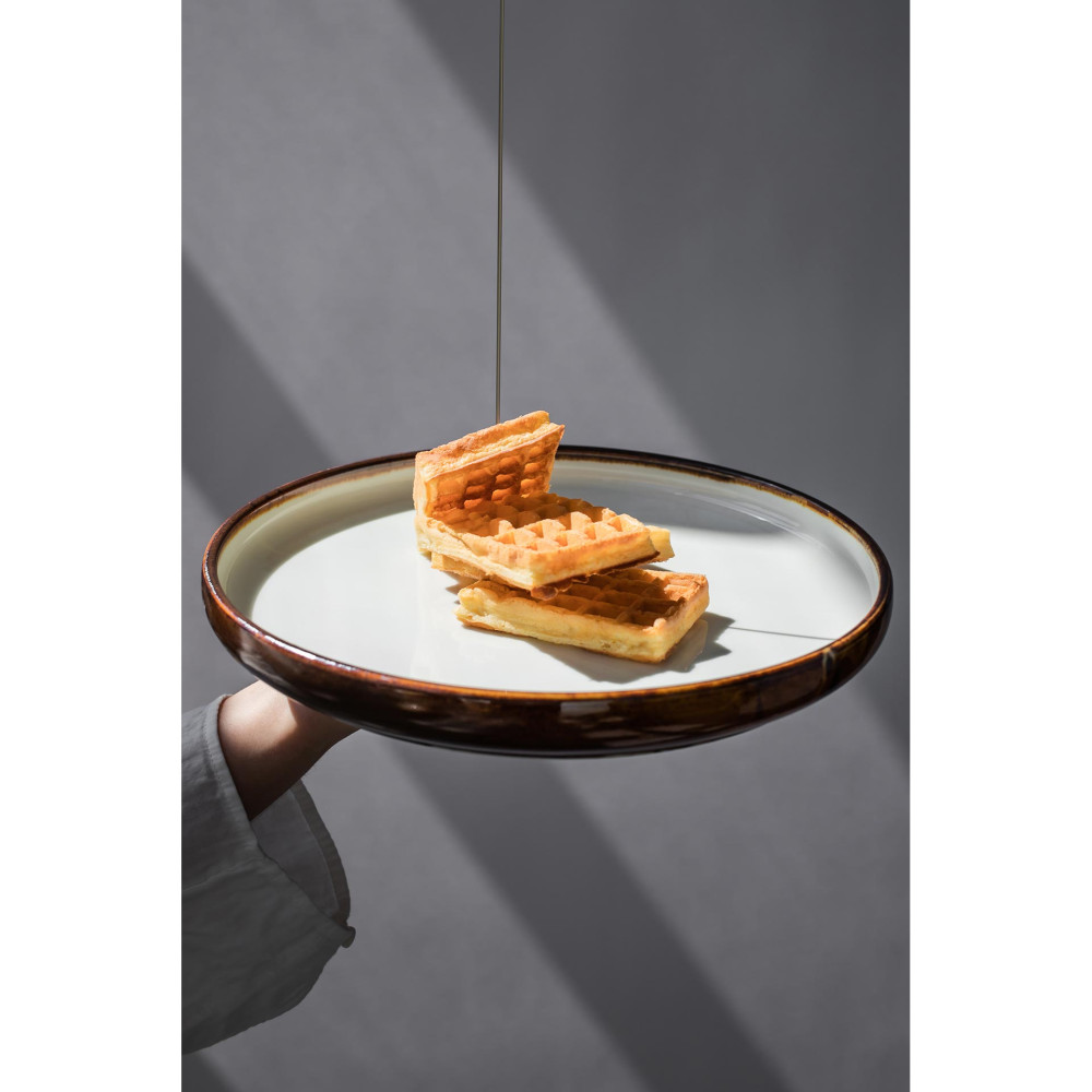 Połączenie dwóch kontrastujących kolorów oraz wysokiego połysku szkliwa daje zachwycający efekt. Mocna forma naczyń i solidna grubość porcelany dodaje tej kolekcji rustykalnego charakteru. Dodatkowy efekt przebarwień i nierównomiernego rozmieszczenia kolorów na zewnętrznej powierzchni naczyń, uzyskany został dzięki specjalnej metodzie wykorzystania szkliwa reaktywnego. W jej wyniku na powierzchni filiżanek, mis, półmisków i talerzy powstają nieregularne dekoracje. Do złudzenia wyglądają jakby powstały w sposób naturalny. Zewnętrzna brązowo-rdzawa barwa przenika delikatnie do wnętrza naczynia i łączy się subtelnie z odcieniem „lodowatej” bieli. Ten niesamowity efekt to połączenie nowoczesności i nawiązanie do tradycyjnych form naczyń. Artystyczne postarzanie porcelany to obecnie bardzo modny trend w wystroju restauracji czy jadalni.