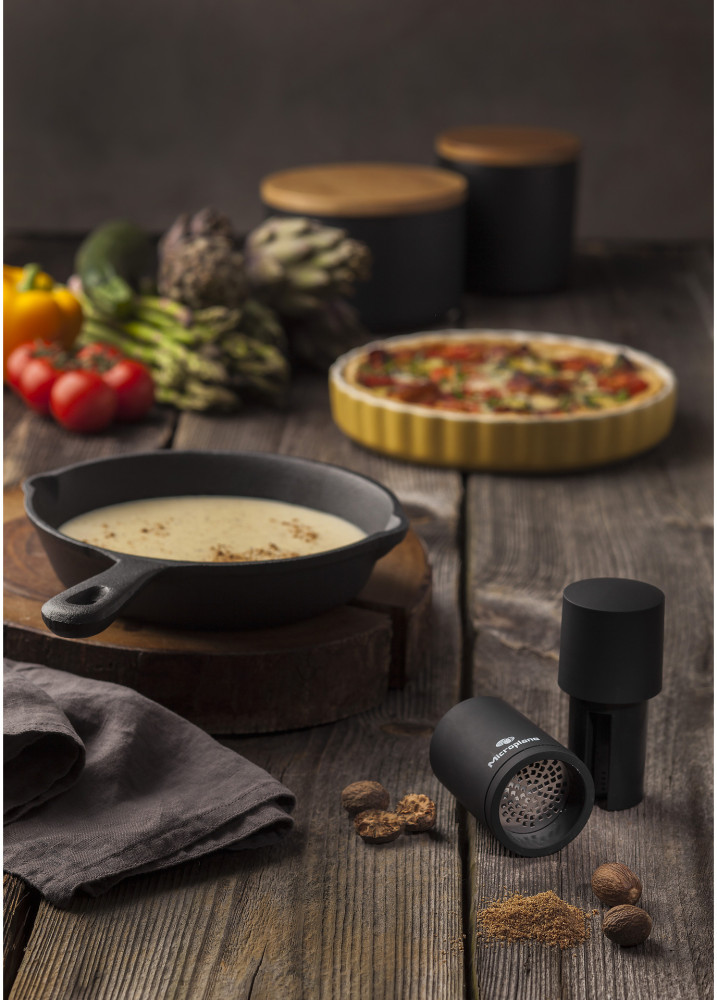 Młynek Microplane zapewnia doskonałe rezultaty mielenia twardych przypraw, również takich, które nie mogą być mielone w tradycyjnych młynkach. Młynek Microplane z powodzeniem zmieli gałkę muszkatołową, korę cynamonu, orzechy, fasolę tonka, długi pieprz, czy ulubioną mieszankę rodzajów pieprzu. Niezwykle precyzyjne ostrze umieszczone jest w podstawie młynka. Młynek jest łatwy w użyciu. Wystarczy zdjąć górną część, umieść przyprawy, następnie nałożyć górną część, docisnąć i przekręcać zgodnie z kierunkiem wskazówek zegara. Przyprawy mogą być przechowywane bezpośrednio w młynku – szczelny dozownik chroni przyprawy przed utratą aromatu i zapachu. Silikonowa osłonka podstawy młynka, pozwala zachować czystość, kiedy młynek nie jest używany – przyprawy nie wydostają się z podstawy młynka, zaśmiecając blat czy stół.