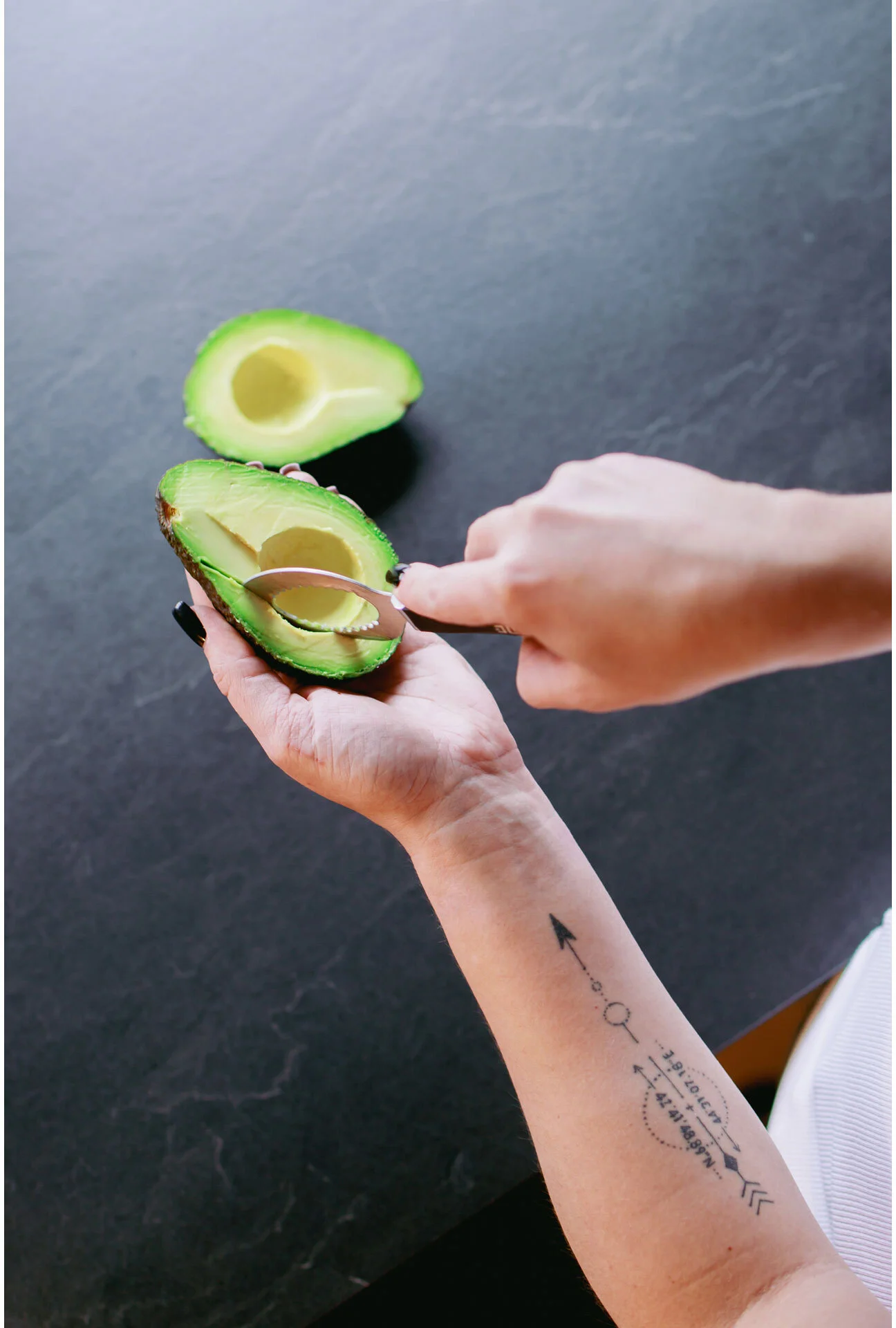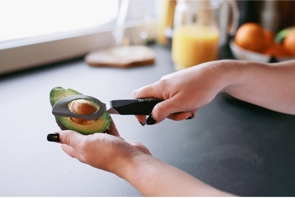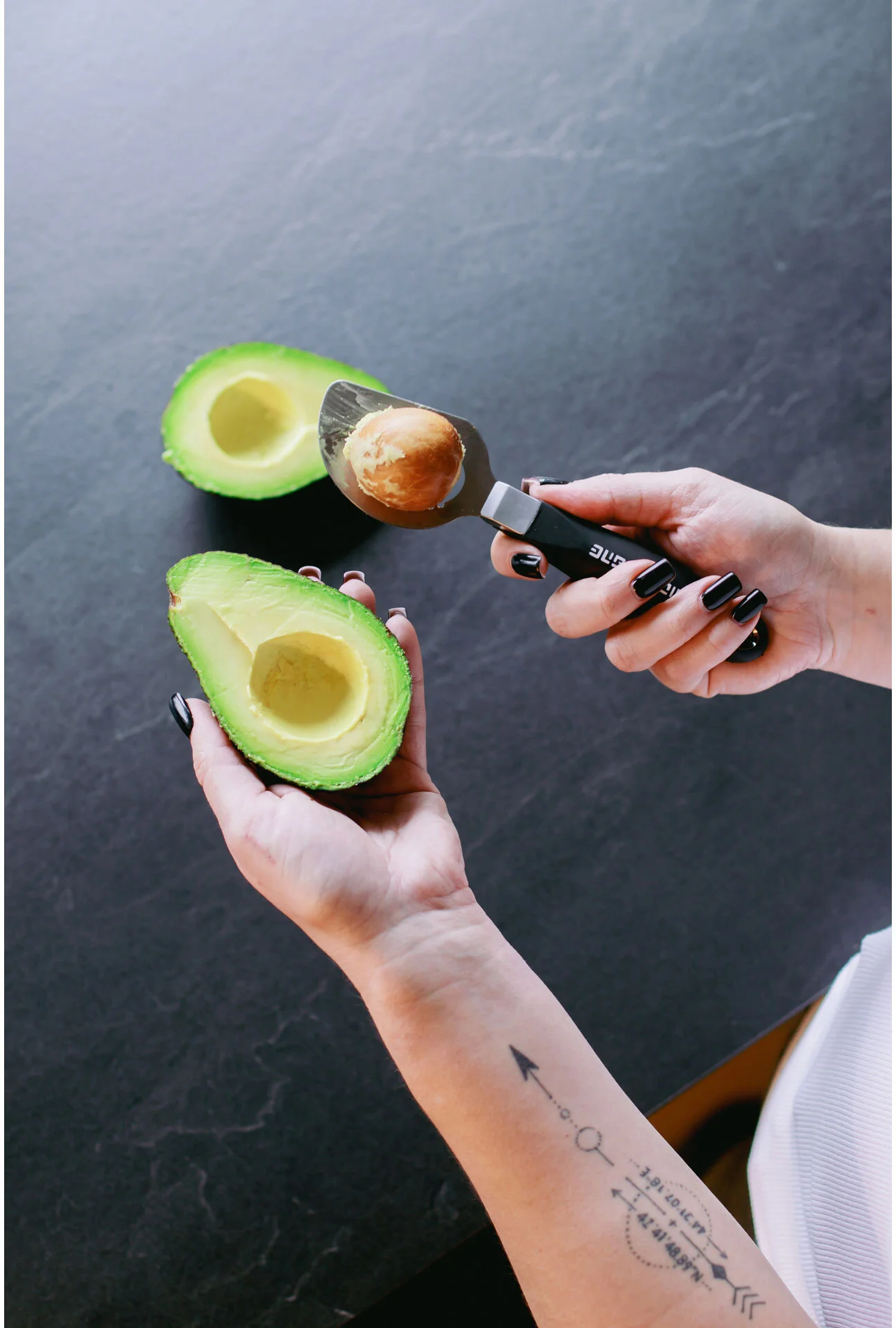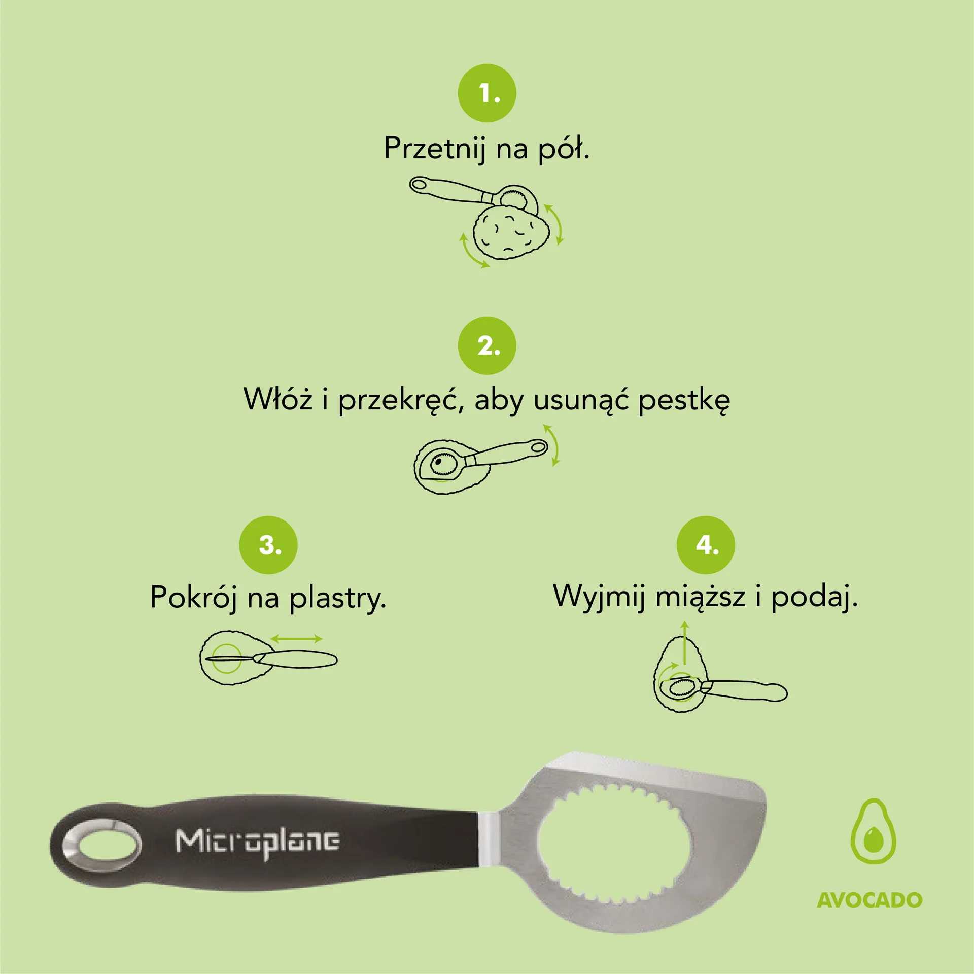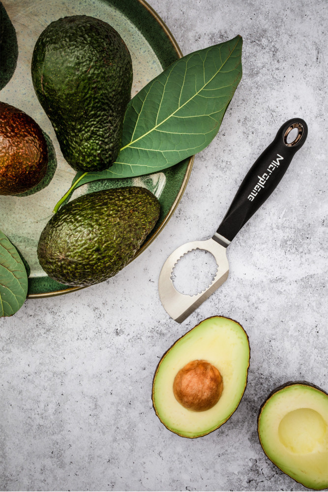 Nóż do awokado 3w1 marki Microplane - dzięki niemu możesz łatwo i bezpiecznie dzielić, usuwać pestkę, oraz kroić awokado, a także wydobywać jego miąższ. Ostrze do krojenia jest specjalnie zaprojektowane, by łatwo przecinać skórkę awokado, natomiast funkcja usuwania pestki zapewnia szybkie i bezproblemowe pozbycie się pestki. Dodatkowo funkcja wydrążania pomaga oddzielić miąższ od skórki, pozwalając na szybkie i precyzyjne przygotowanie świeżego awokado. Niezastąpiony pomocnik dla wszystkich miłośników tego pysznego owocu!
