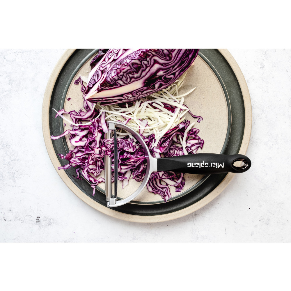 Uznana na całym świecie amerykańska firma Microplane jest producentem z 50-letnim doświadczeniem, który zastosował do produkcji młynka i tarek technologię fototrawienia - innowacyjny proces zaprojektowany specjalnie do tworzenia ultra-ostrych krawędzi tnących. Maleńkie zęby zachowują się jak niezwykle ostre noże do precyzyjnego krojenia składników. Nie rozdzierają i nie zgniatają produktów jak większość dostępnych na rynku „tarek tłoczonych”. Te specjalistyczne ostrza sprawiają, że jedzenie nie przykleja się ani nie blokuje, ale delikatnie przesuwa się po powierzchni cięcia, zapewniając doskonałe rezultaty ścierania na drobne wiórki i nitki, a produkty wilgotne na miazgę.
