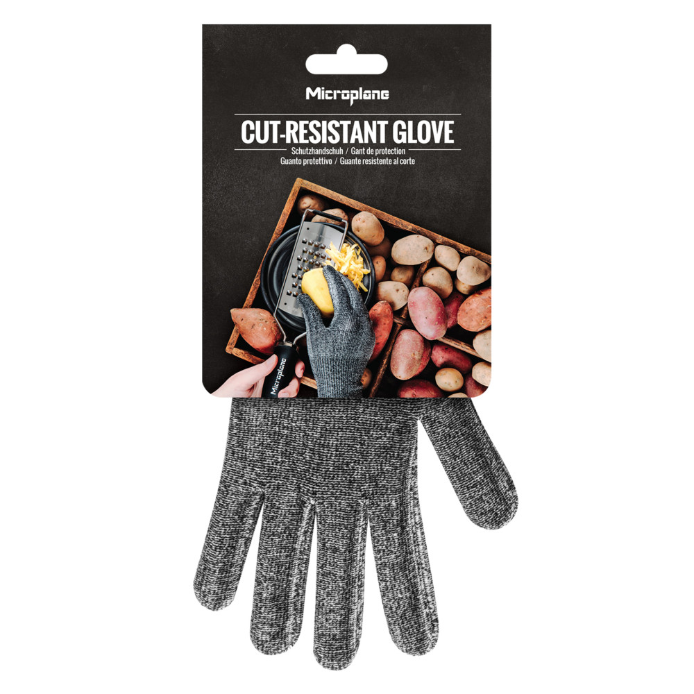 Rękawica Microplane skutecznie zabezpiecza przed skaleczeniem się podczas tarcia. Jest wykonana ze specjalistycznej, bezszwowej dzianiny odpornej na przecięcia. Jej kształt jest uniwersalny co oznacza, że jest odpowiednia zarówno dla praworęcznych, jak i leworęcznych osób. Jest elastyczna i dopasowuje się do każdego rozmiaru dłoni. Może być prana w pralce w temperaturze do 60 stopni C. Skutecznie zabezpiecza dłonie przed ewentualnym zranieniem (w takim przypadku uszkodzona zostaje rękawica a nie dłoń). Produkt ten przystosowany jest do kontaktu z żywnością i posiada certyfikat FDA (Amerykańskiej Agencji Żywności).