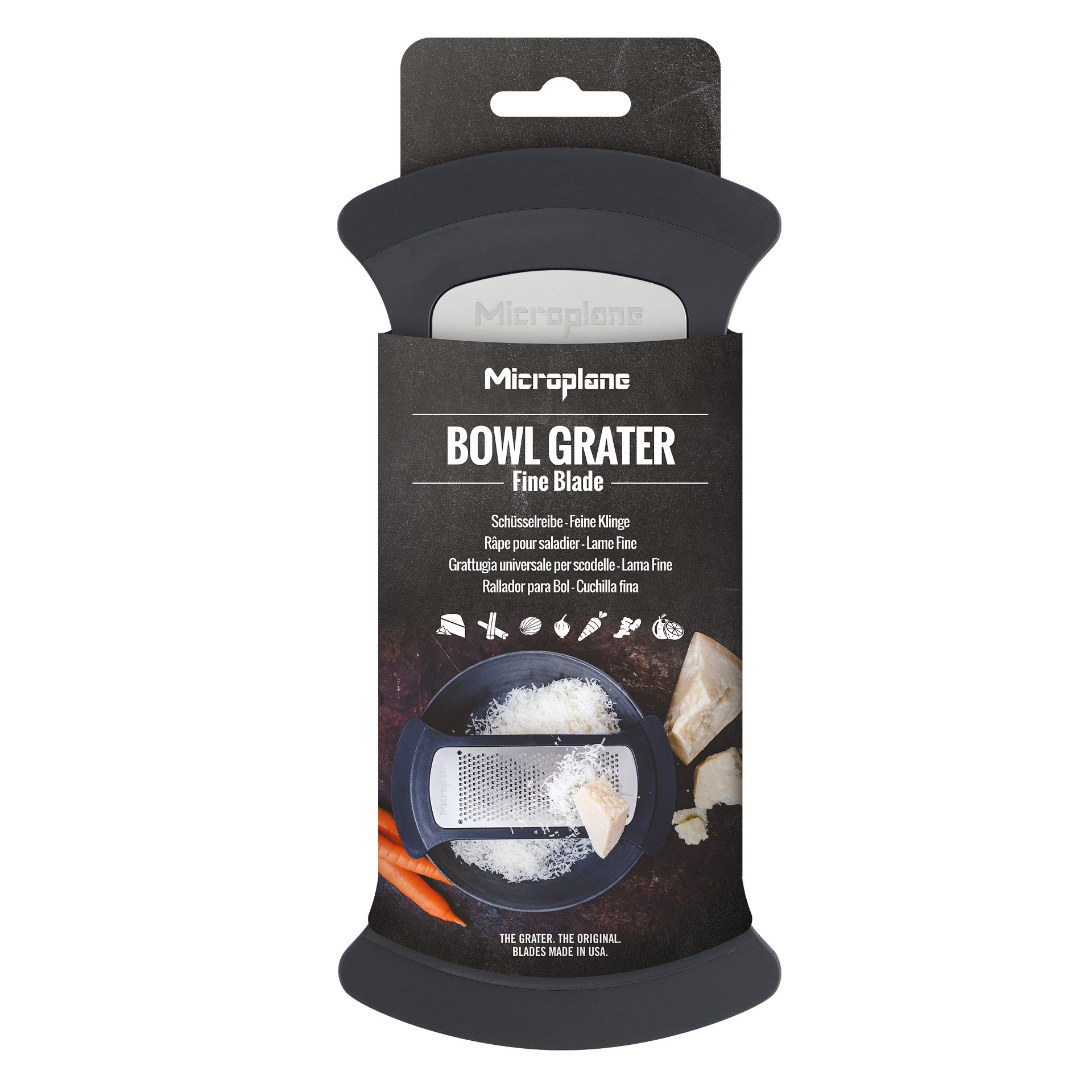 Tarka Fine łatwo i wydajnie ściera twarde sery, cebulę, marchew, imbir i skórkę owoców cytrusowych bezpośrednio do miski. Tarka z drobnym ostrzem została zaprojektowana tak, aby wygodnie mieściła się w każdej okrągłej misce (o średnicy do 16 cm). Tarkę można ustawić poziomo na powierzchni miski, opierając ją na brzegach, poziomo wewnątrz miski lub wewnątrz pod kątem. Dzięki antypoślizgowym uchwytom po obu stronach idealnie dopasowujących się do brzegów miski zapobiegając jej poślizgowi, a ścieranie jest niezwykle wygodne, szybkie i łatwe.
